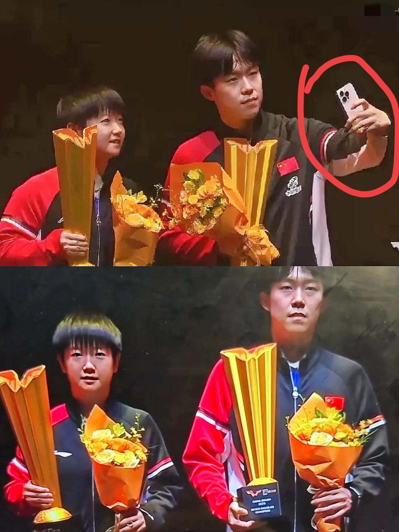 谁能想到? 莎头组合刚拿下北京大满贯混双冠军,不到一分钟就冲上热搜? 球迷调侃得太到位了:八年搭档真不是白练的,这俩人简直是“混双老祖”! 平时不见他俩频繁亮相,半年才出来“打击”一圈对手,却能把覆盖全球的赛场变成自己的主场。这已经是他们第五个大满贯混双冠军,2000积分稳稳到手,完美印证了“半年不开张,开张吃半年”。 最有意思的是今天的自拍,还是王楚钦拿的手机,估计是奖杯沉得腾不开手!