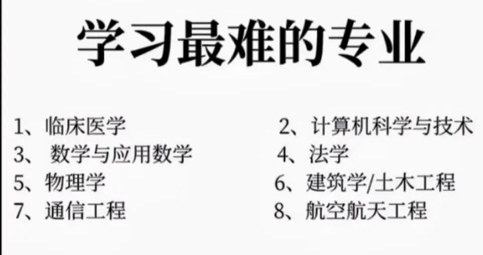 最难就业的专业有哪些?学习最难的专业有哪些? 对于考生和家长来说,选择大学最重要的就是选择专业。如果选择了就业比较难的专业,肯定是比较焦虑的。 下面第一张图表,是就业难的专业排行,基本都是文科专业;第二张图表列举了最难学的专业,这些专业都是学习时间长,精密要求高的专业。 文科专业是否好就业这个事也是根据具体情况来定的,如果能够考公考编,或者央国企的一些管理岗,文科生还是有一定优势的。所以客观说应该没有绝对难就业的专业,关键要做好规划。 至于比较难学的专业,家长和同学在选择的时候确实要考虑清楚,考虑清楚是否能顺利毕业?大学有的专业课程,不是只凭借努力就能学会的。 欢迎关注“升学二人谈”,带您了解升学各阶段资讯,为家长和同学全方位规划升学方案,解决遇到的各种情况和问题。#专业排行# #专业榜单# #就业率低的专业#