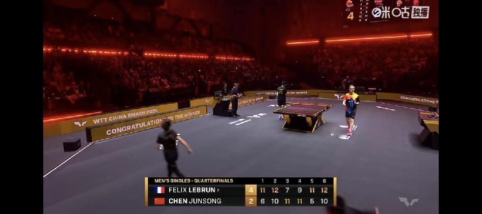 陈俊菘2:4勒布伦!打的很好了! 已经打得很好了,感觉主要是接发的问题,有点依
