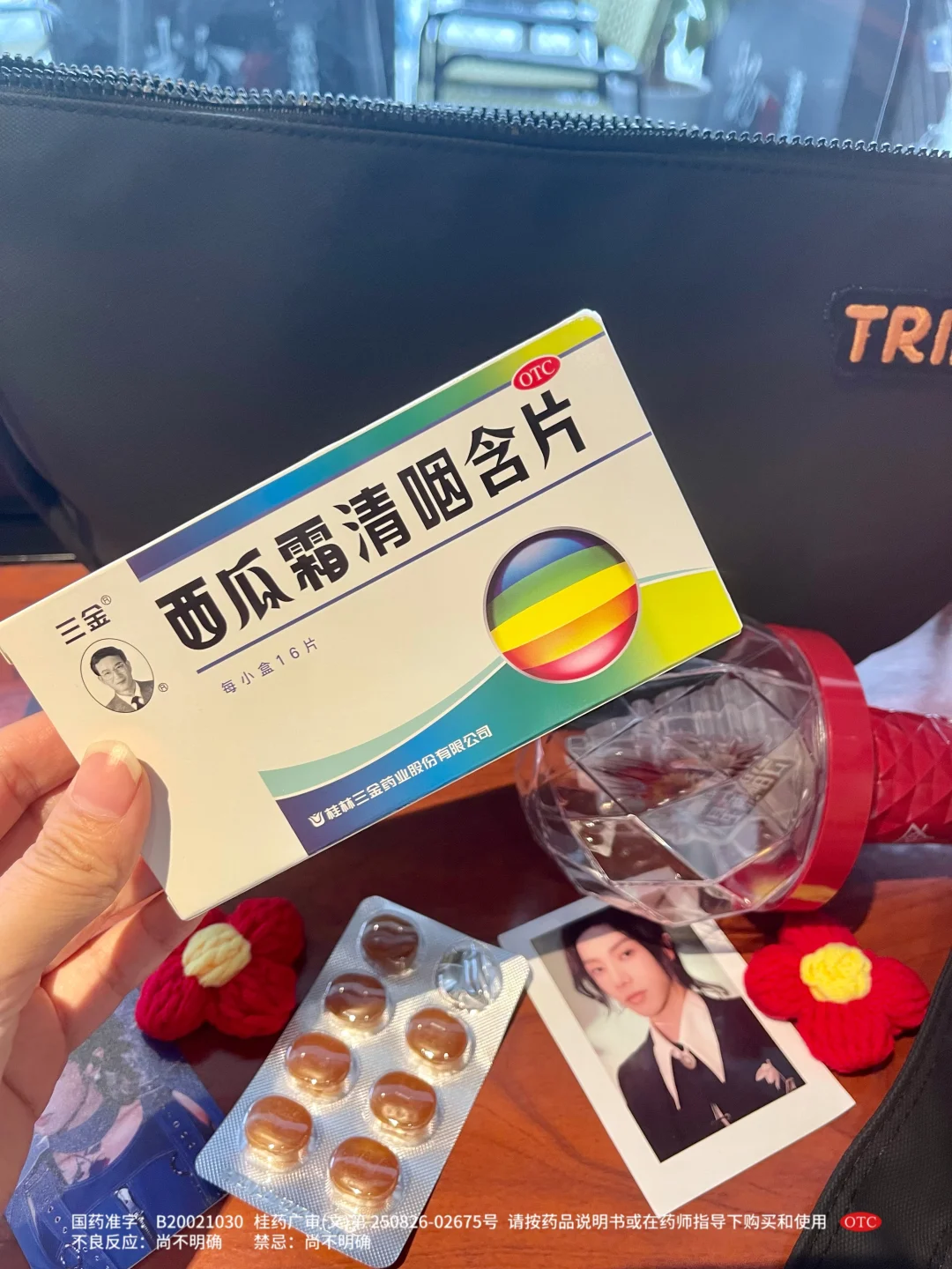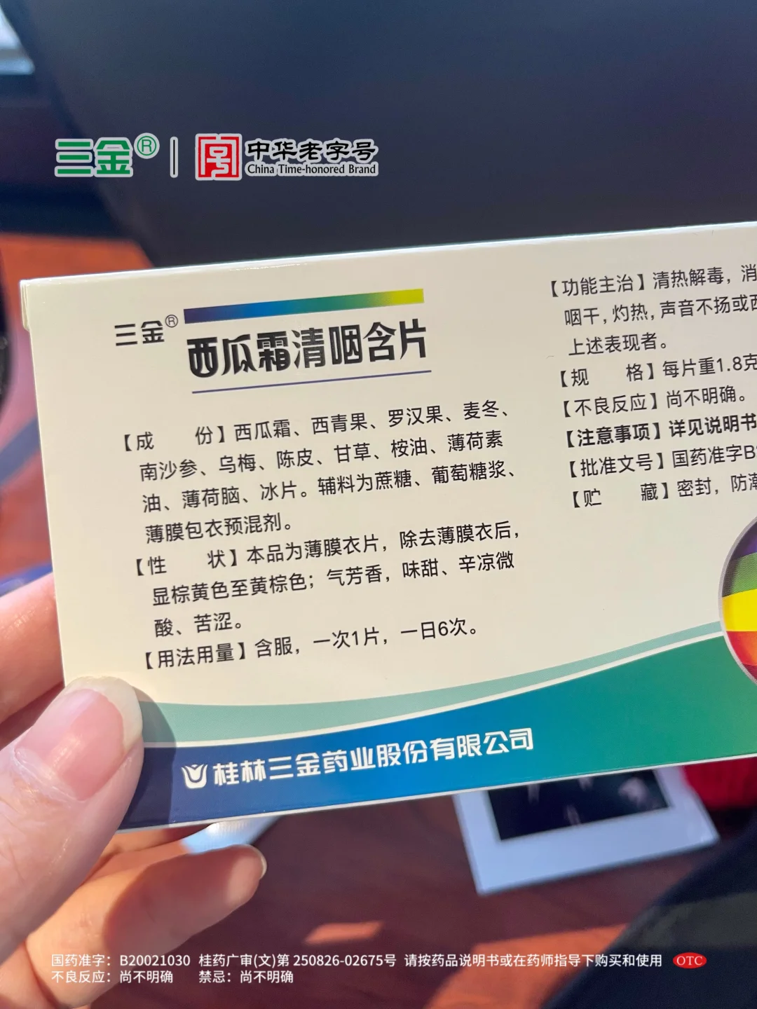 它成分含有百年口喉良药“西瓜霜”,能舒缓声音不扬或者咽干咽痛!后面我学精了,去杭州场我也备上,那一场我跟唱的酣畅淋漓,结束后就用它缓解嗓子不舒服!生产厂家桂林三金还是中华老字号品牌,几十年的老国货啦,值得信赖~经常去看各种音乐节或演唱会的姐妹们,挺建议带上!