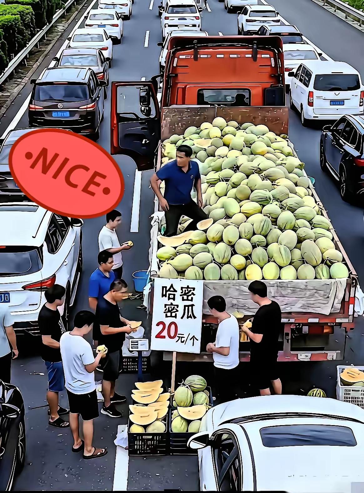 谁能想到长假高速堵车,有人愁得骂街,有人却赚麻了!一位大哥开着货车拉满哈密瓜赶路,结果被堵在高速上动不了,眼瞅着瓜可能坏,干脆临时摆摊卖瓜。 没成想路过的司机都抢着买,堵着堵着,一整车瓜全卖空了!网友都说这大哥脑子转得快,把别人的“糟心事”变成了自己的“好日子”。 其实这事儿特给人启发:遇到麻烦光抱怨没用,换个角度想办法,说不定就有转机。 要是总盯着堵路的烦躁,哪能发现这意外的机会?你们堵车时还见过啥靠变通解决问题的事儿?