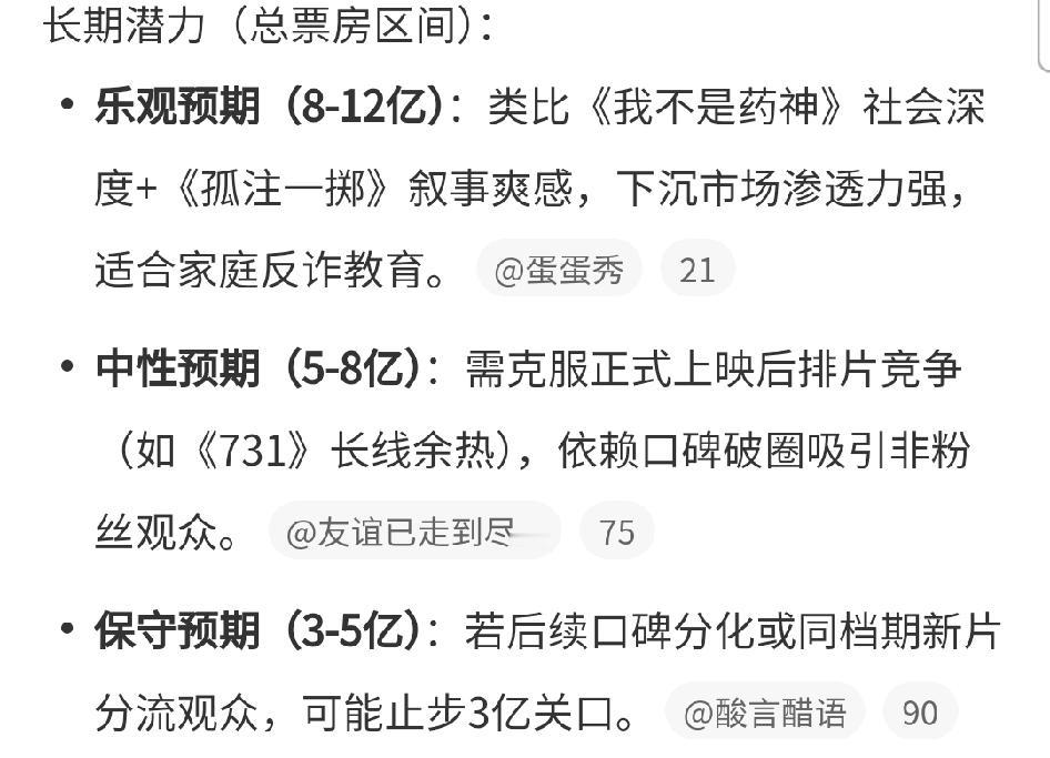 国庆档七部新片表现不佳,檀健次《震耳欲聋》或成救命稻草,你看好吗? 很多人表示《震耳欲聋》上映最晚观众被抢,但好的演员好的现实故事题材总会有人欣赏的。个人觉得《志愿军》抢不了《震耳欲聋》的观众,毕竟几天过去了,《志愿军》口碑崩了,并且它们的题材也是不一样的,一个是爱国战争片,一个是残疾人反诈发声民生片,各有各的卖点。 目前网页上《震耳欲聋》的预测票房有望冲击12亿,但总体有些过高了!大家觉得它的最终票房会是多少?会超过5亿吗?檀健次新电影《震耳欲聋》
