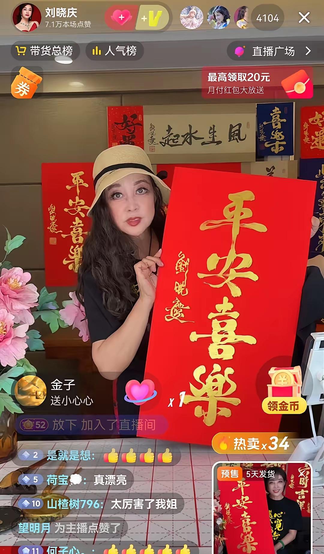 刘晓庆在直播间卖字,真好奇、这字真的都是她亲手写的吗?她这么努力的赚钱,到底图个
