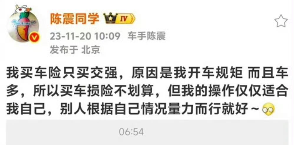 陈震劳斯莱斯发生车祸!座驾维修费或超百万。 从曝光的现场图片看,劳斯莱斯车头损毁严重。疑似陈震同学本人在现场协助交警处理事故。 网传陈同学超速且逆行导致的事故,据了解,陈同学的社交媒体最后一次发文停留在昨天下午5点左右。 陈此前发文称买车损险不划算,劳斯大概率只交了交强险,但陈有钱啊,就是劳斯全毁也受的了。