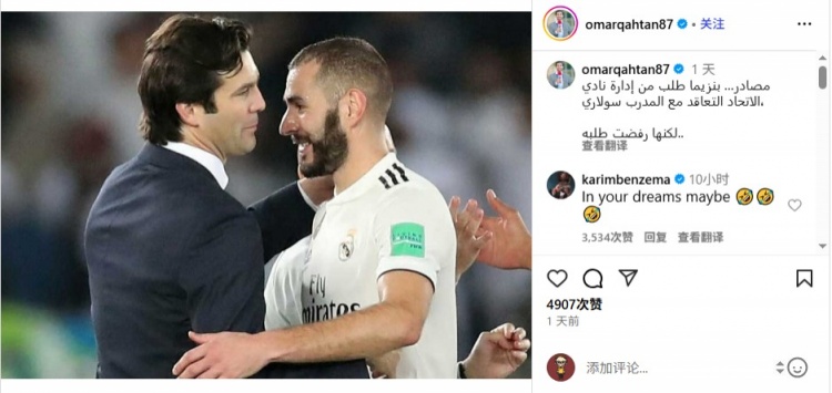 直播吧10月4日讯记者OmarQahtan报道,本泽马要求吉达联合引进索拉里作为主帅,但遭到拒绝,本泽马随后在评论区辟谣。