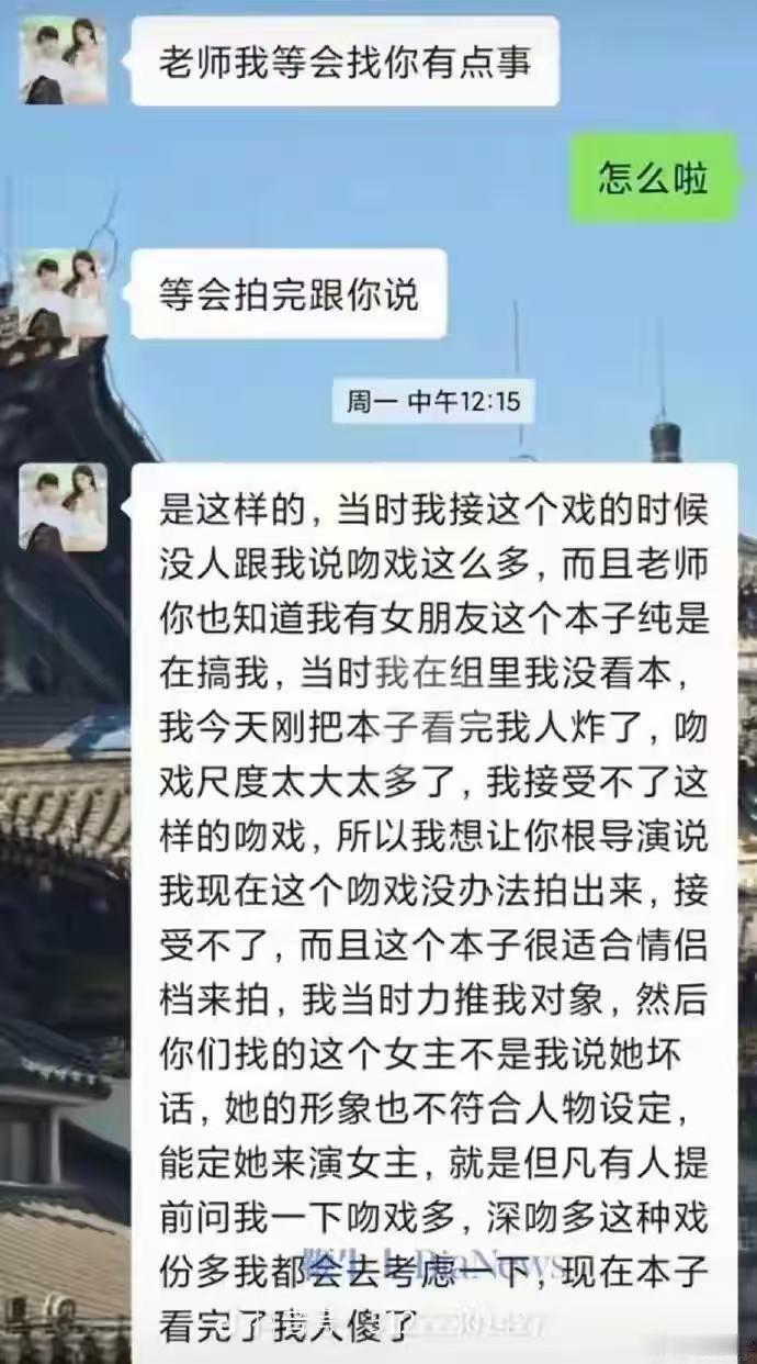 19岁男演员为拒吻戏玩消失,女主控诉:跑路就跑路,走之前还踹我一脚 网友评论: 第一智商低,接剧都不看剧本,二是情商低,一个圈子混的,不拍算了还说别人太丑,不符合剧情设定,等于把女主、导演、选角的都得罪了,最后是没有职业素养,没红就挑三拣四,一不高兴就跑路,以后谁还敢用。 我虽然不会演戏,但亲嘴应该不难,只要女的长得像正常人一般,没口臭腋臭,我想我能下得去嘴,吻戏无非就是吃对方口水难道还要别人教 还是男的干脆。上次也有个女的抱怨吻戏太多但她就是纯抱怨,这次换成男的直接跑路了 还没看明白吗?吻不吻不是重点,他是在以退出拍摄为由倒逼制片方把女主换成他女朋友。