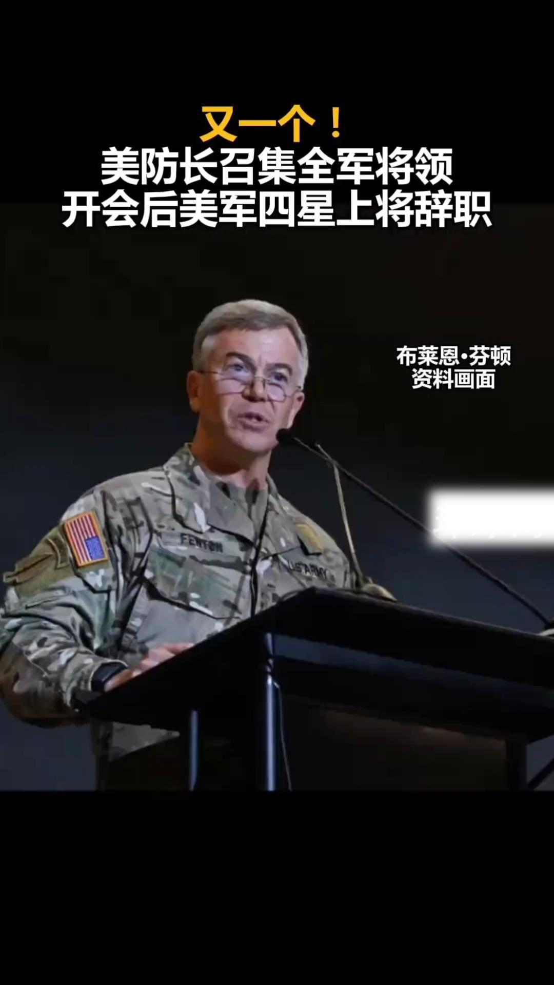 美军再有四星上将辞职!当地时间2日下午,美国陆军四星上将、特种作战司令部司令布莱恩·芬顿宣布辞职。他是继空军上将托马斯·比西尔之后,又一位在防长赫格塞思召集全军将领开会后离职的高级将领。 9月30日,赫格塞思公然要求不认同他观点的将领离开,特朗普也表态“谁想走,可以走”。10月1日比西尔申请退役,如今芬顿也离职,辞职信中均未提及辞职原因。特朗普执政以来已有七位上将离职或被撤。赫格塞思还打算削减将领数量,新国防战略方向也遭到不少军官反对。看来,美军内部因政治因素干扰,正乱作一团。 美将领召回 美军领导层改革 美将领 美解雇将军 美军司令 美军将领召回