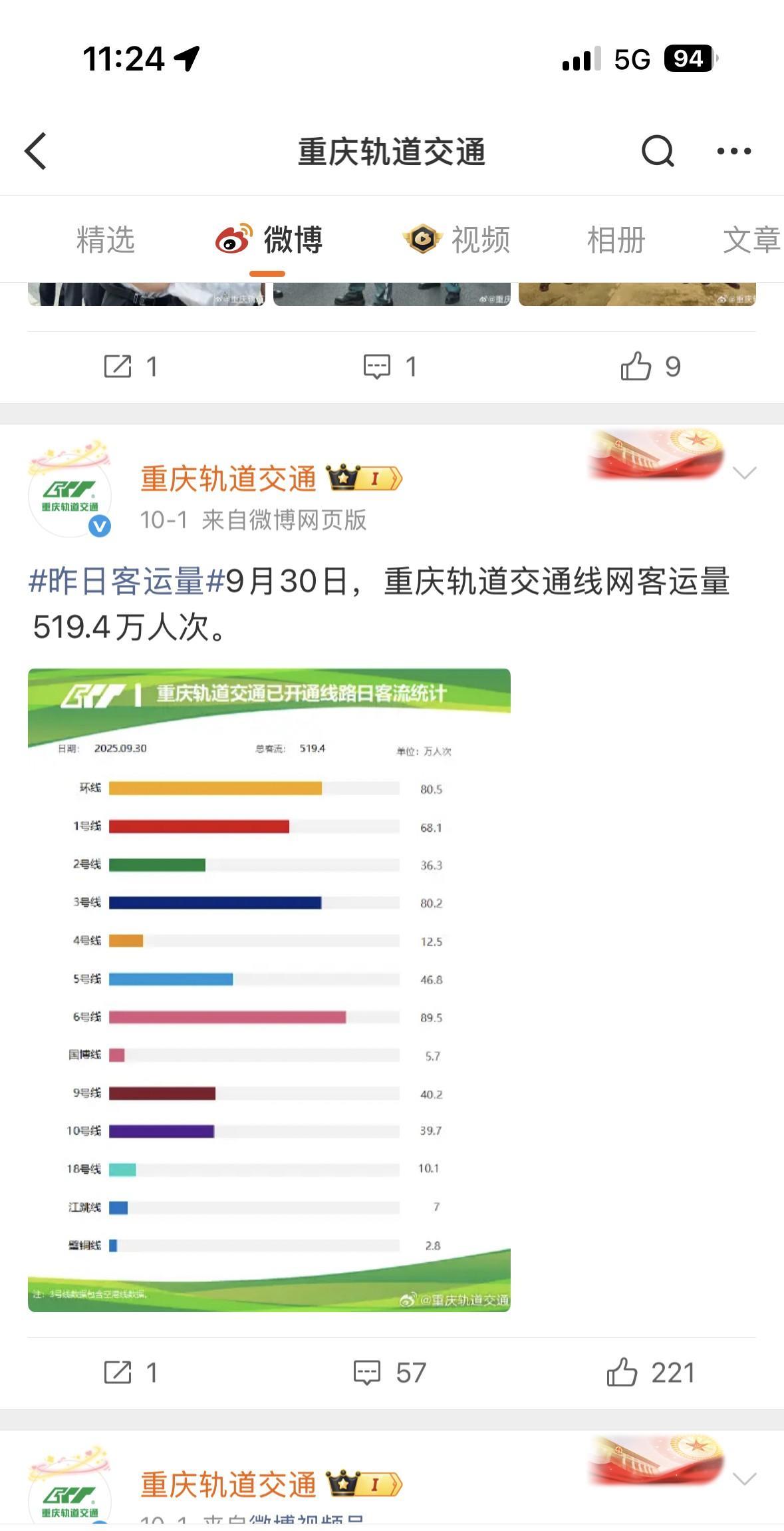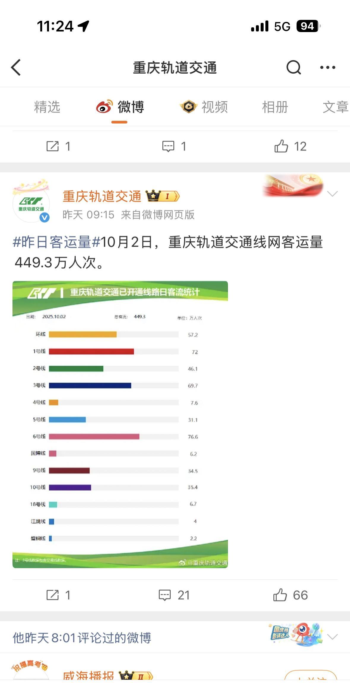 10月1日至3日,重庆地铁客流量逐日攀升,3日比2日多了20多万人次!也许,3日就是重庆旅游的客流量最高峰,3日晚的重庆酒店宾馆民宿的价格也是最高贵的,4日开始轻度降价…… 4日白天,重庆应该与3日差不多,4日白天重庆各大景区景点应该也是巅峰客流量,但是4日晚上应该会少一些。 10月5日,2025年国庆节假期返程高峰第一波开始……不可能有3日4日这么火了,这是基本常识。 10月6日,重庆酒店宾馆民宿就会便宜很多! 10月7日,大降价! 10 月8日,白菜价! 10月3日中午我要去重庆动物园看热闹。 #光线摄影世界曾兰谈天说地#