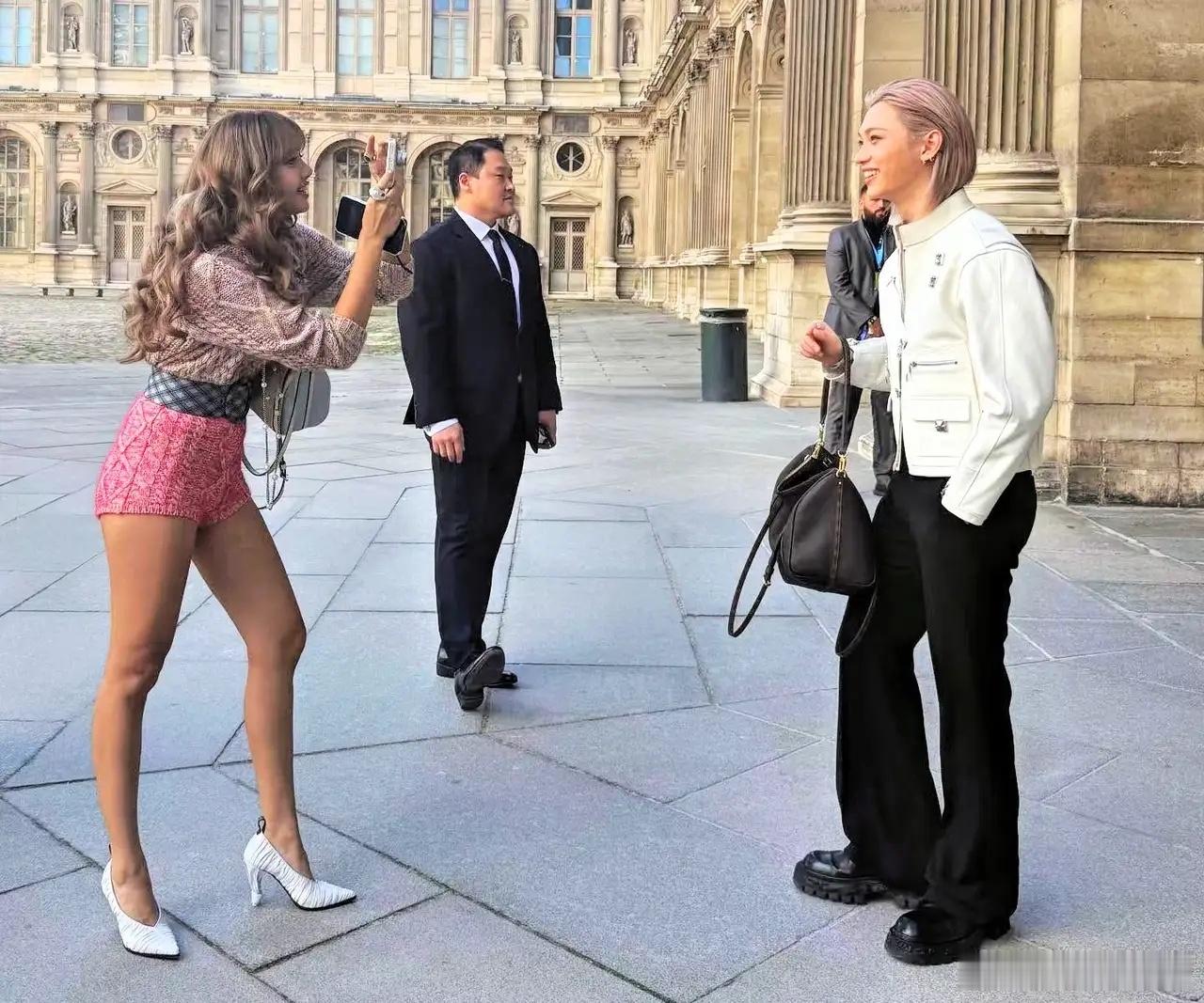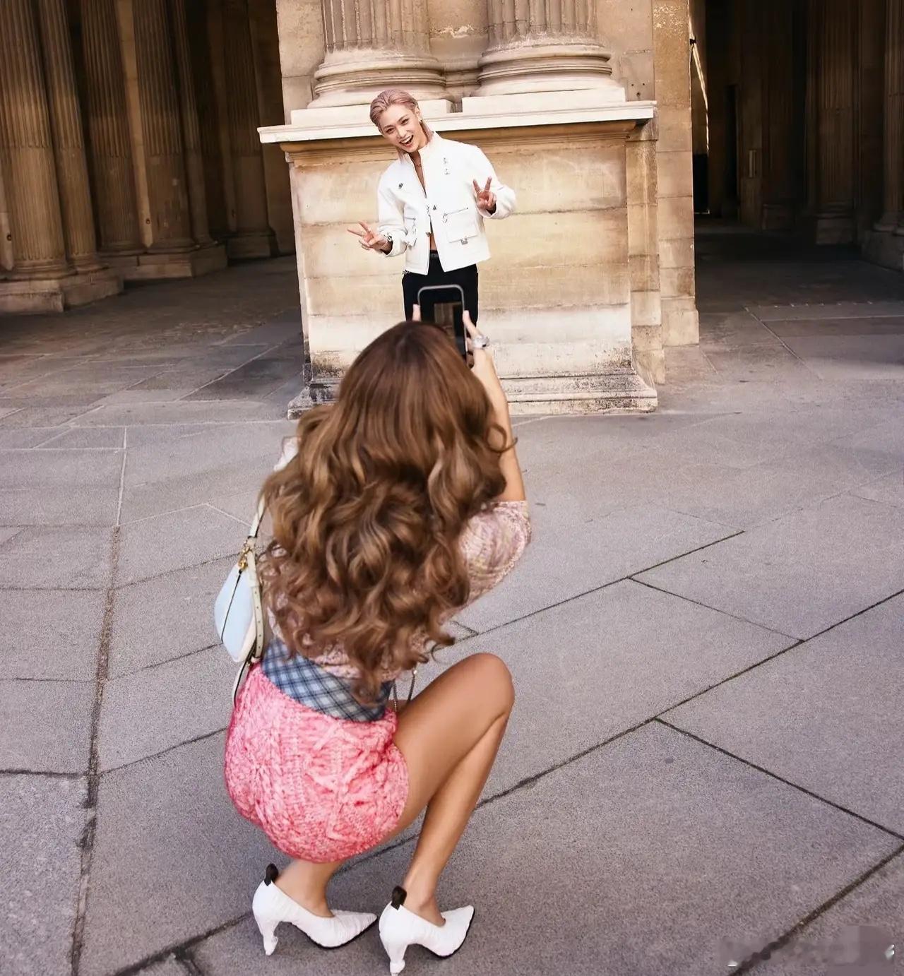 Lisa在时装周上帮朋友拍照,蹲在地上找角度,她好可爱啊!哈哈,她性格真的很好,