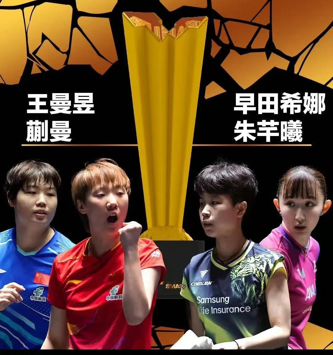 10月4日中午,中国大满贯女双决赛正在进行中。 王曼昱/蒯曼一早田希娜/朱芊曦,