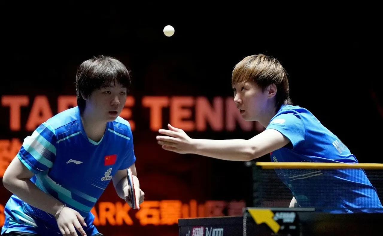 10月4日中午,中国大满贯女双决赛正在进行中。 王曼昱/蒯曼一早田希娜/朱芊曦,早田希娜和朱芊曦虽然是赛前才组合在一起,但是她们打的非常好配合默契一路打进决赛,说明两个人的个人能力非强,进决赛后兴奋点非常高 王曼昱/蒯曼的兴奋点反而低,有疲惫了。又缺少马琳教练的指导,这场比赛不好打,上来先输一局6一11,双曼实力在对手之上,一定要兴奋起来加油。 第二局双曼11一8,第三局13一11[赞][赞][赞]