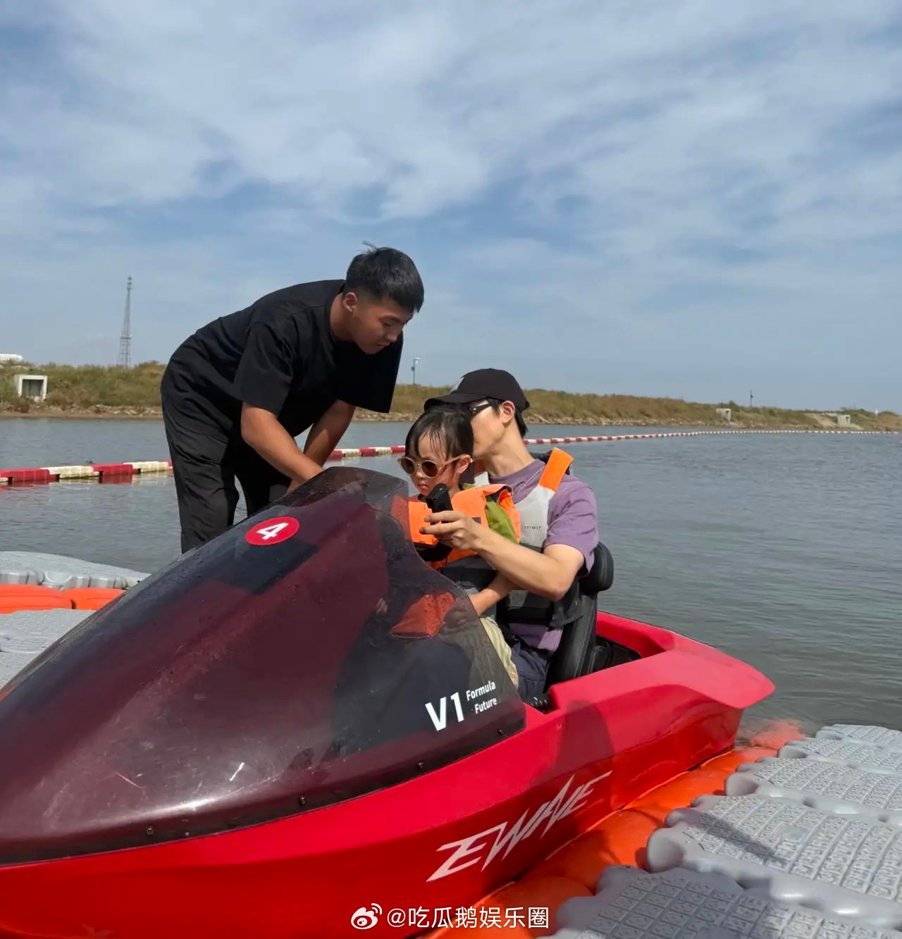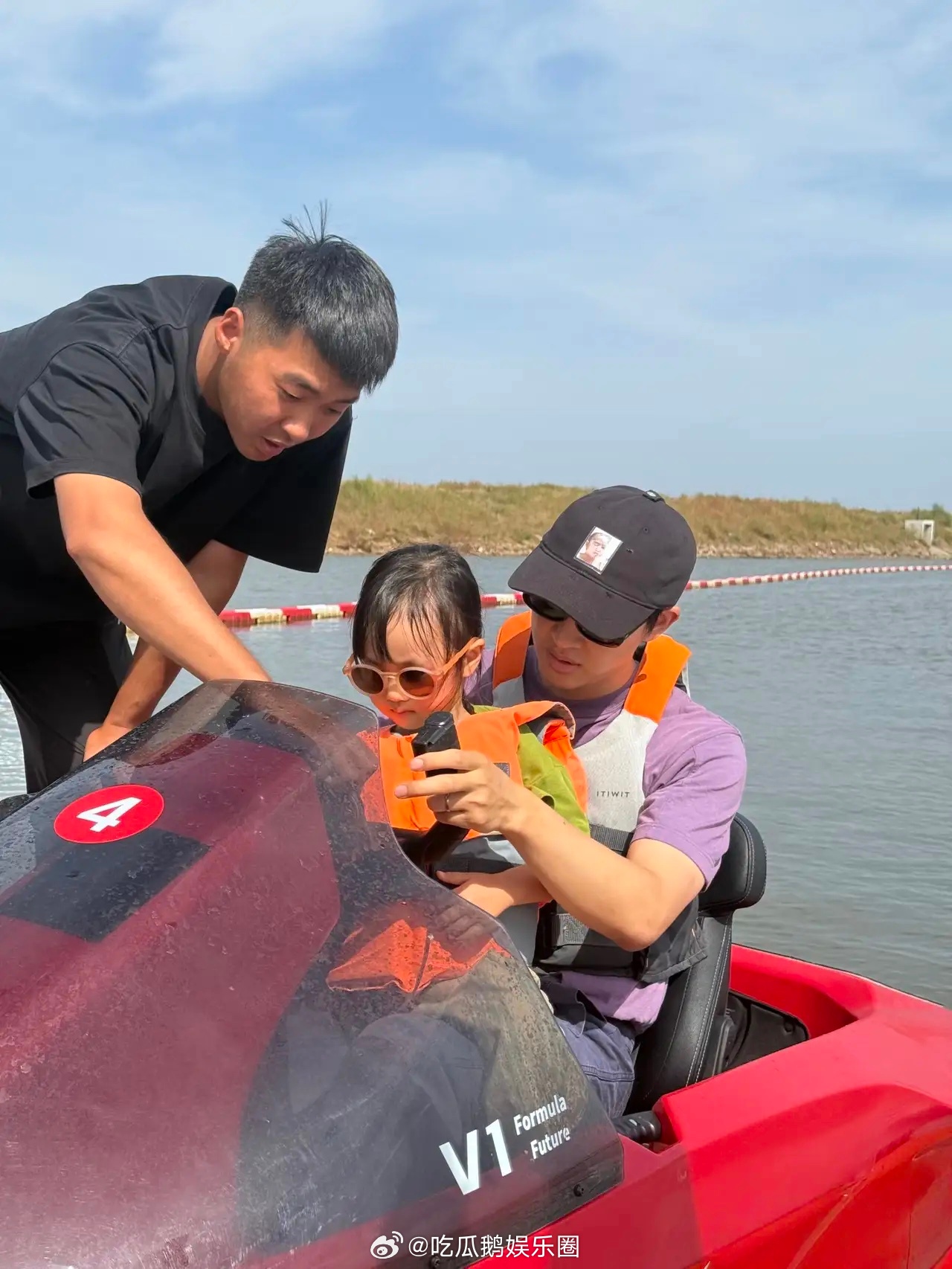 39岁尹昉和家人到秦皇岛旅游,他带4岁女儿到海边玩卡丁船,父女俩的互动好有爱,画面看起来太温馨了!