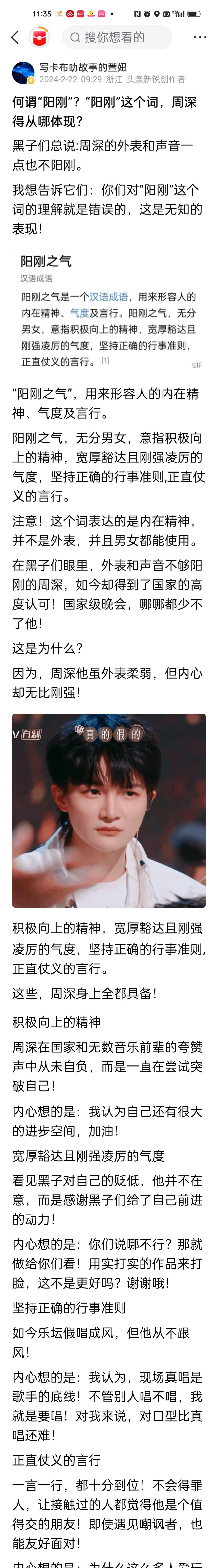 来来来!继续看笑话啦! 明明不喜欢,还要点进来喷一句!就问是不是傻吧?![捂脸] 这种明显就是欠揍型的![吃瓜群众] 这两天,一眼望去全是说周深不阳刚的! 看见这些文盲,我又笑呸呸了![笑哭] 你们眼里的那些阳刚的人,怎么连这一点不阳刚的周深都不如呢?这也太废了吧?[偷笑] 玩自黑就直说啦!水平也太差了点![皱眉] 对了!在此感谢你们! 是你们的造谣诋毁,让周深拥有了永不服输的精神! 是你们,为周深增添了前进的动力! 恐怕,那些没水平,被大众说句两句实话就气恼,直接花钱派你们这群水货诋毁他人的货色,才是你们眼里最阳刚的吧? 要这么看,周深他还真配不上呢![偷笑]