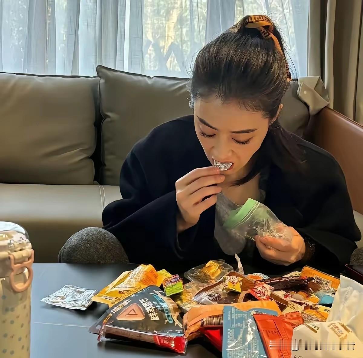 蒋欣竟然放纵自己了,这零食,这小吃真是吃饱了,才有力气减肥啊! 蒋欣也是吃了大骨