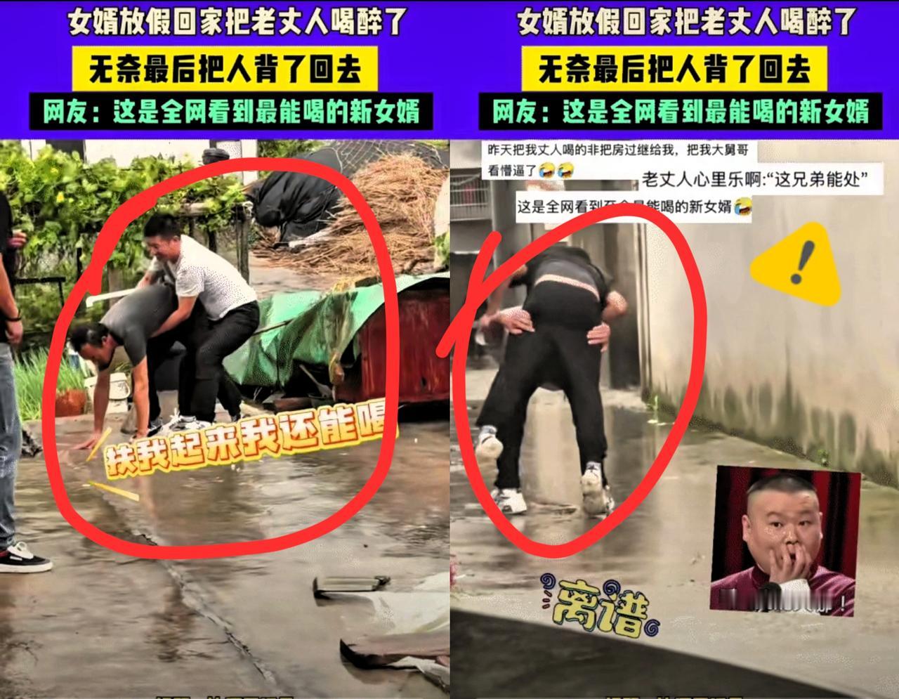 “笑不活了!”江苏,女婿放假陪妻子回娘家,陪老丈人喝酒直接把人喝得站不稳,下雨天