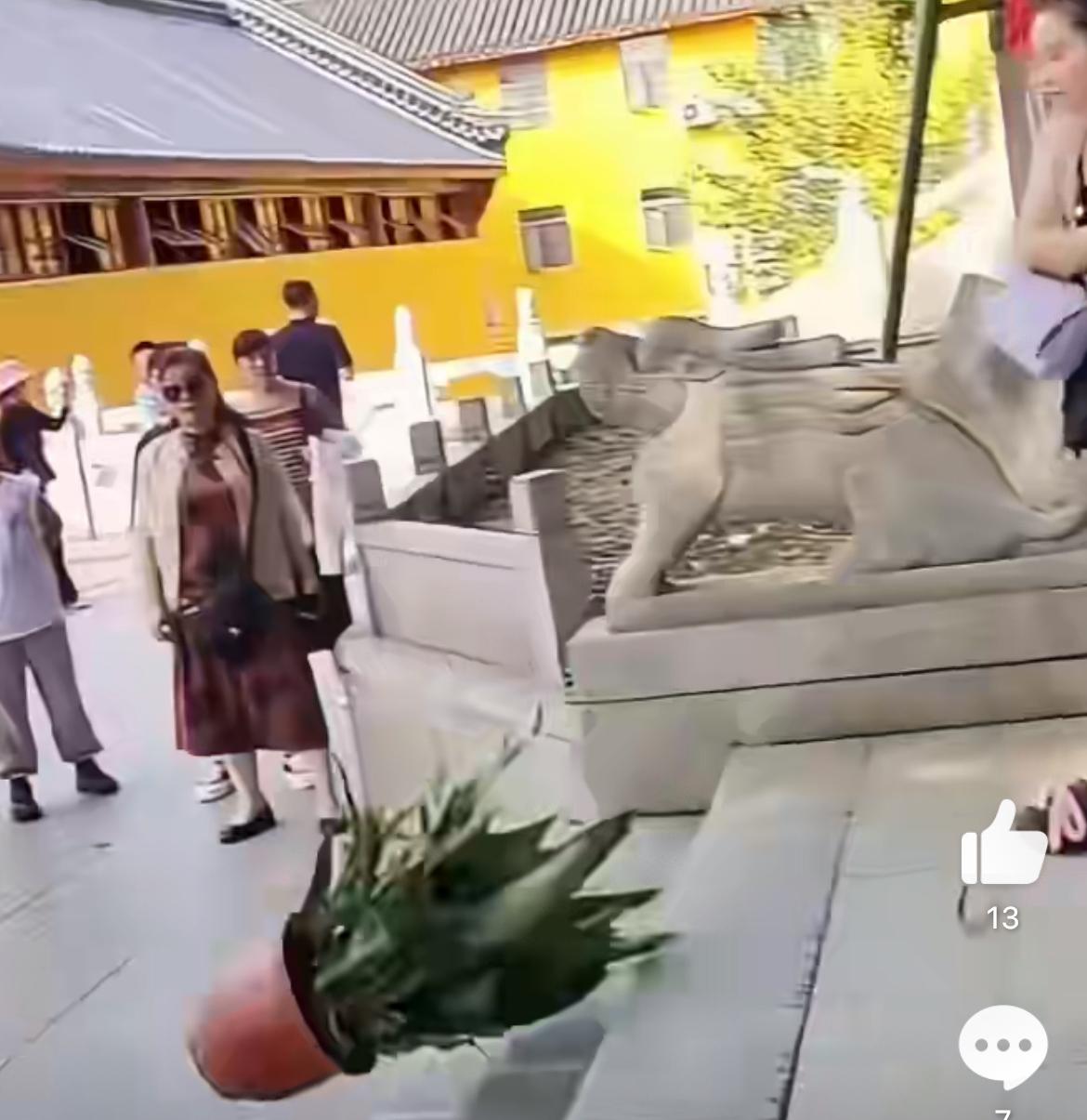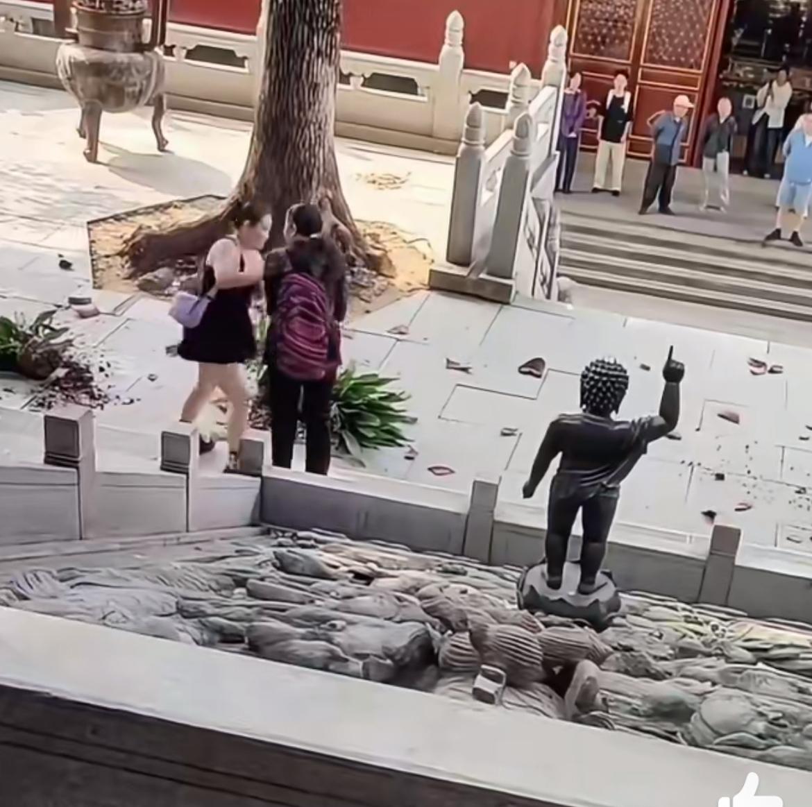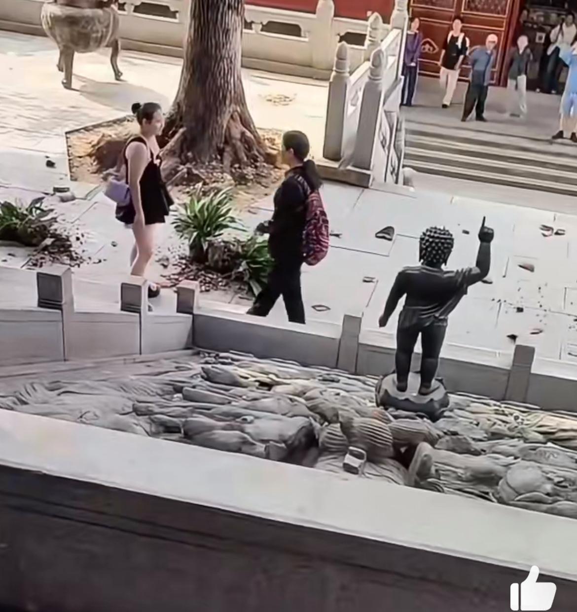 小仙女大闹寺庙,只因穿着清凉不给进大殿烧香拜佛,小仙女于是丢花盆泄愤,自称老子神J病,有钱赔得起。看看小仙女的打扮,的确进庙烧香有点不合适,有辱清修之地。小仙女一通发泄之后,疑似庙里的黄马甲义工给她道歉,不停双手合十鞠躬,还自扇耳光。一个保安过来,说要报警,女滴说,你报啊。公园里的小仙女 小仙女