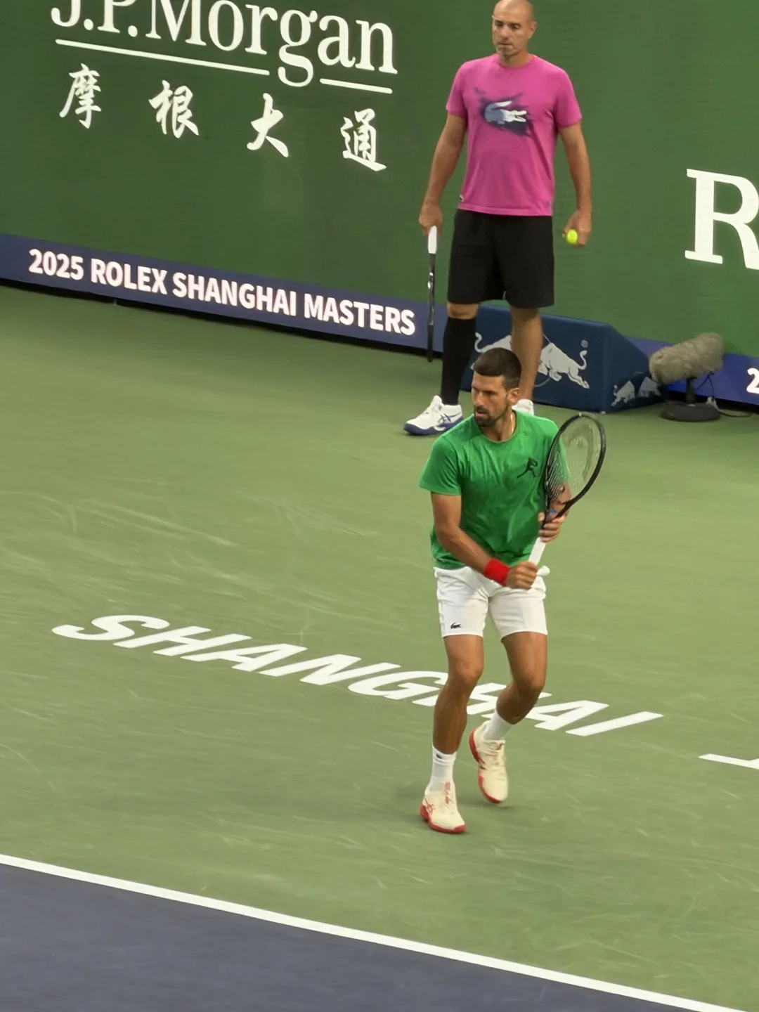 真的好开心哈哈哈开心到现在!! 还想发一条! 今年因为有别的行程 只能看10.3号的夜场 没想到就碰到了德约🥺 而且去得早 在外场随便逛了逛就进中央球场了 于是正好碰到的德约在训练!!! 训练版的绿衣服德也超帅! 整个人太帅了啊😆 今晚的比赛也很过瘾 第一局就抢7了 最后2:0拿下 当然对面也是很厉害的! 对着镜头签名的时候 小德忘记自己中文名咋写了也太可爱了! 太开心的一天😛😛谢谢J姐的票