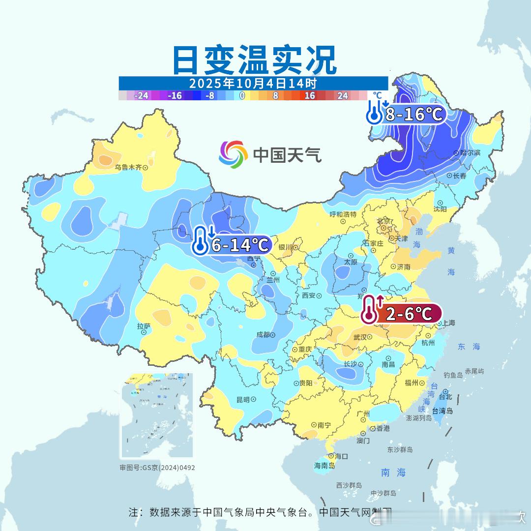 【高温和降温】今天副热带高压依然维持强势,500百帕实况场,592线控制了华东多地,浙江福建江西站点包揽14时气温榜前十。而且结合相对湿度,部分站点体感温度超40℃。在内蒙古东部和黑龙江西部,因为冷空气影响,气温明显下降。黑龙江漠河下午气温不到5℃,体感温度零下0.1℃,与江西浙江部分站点,体感差40℃以上。