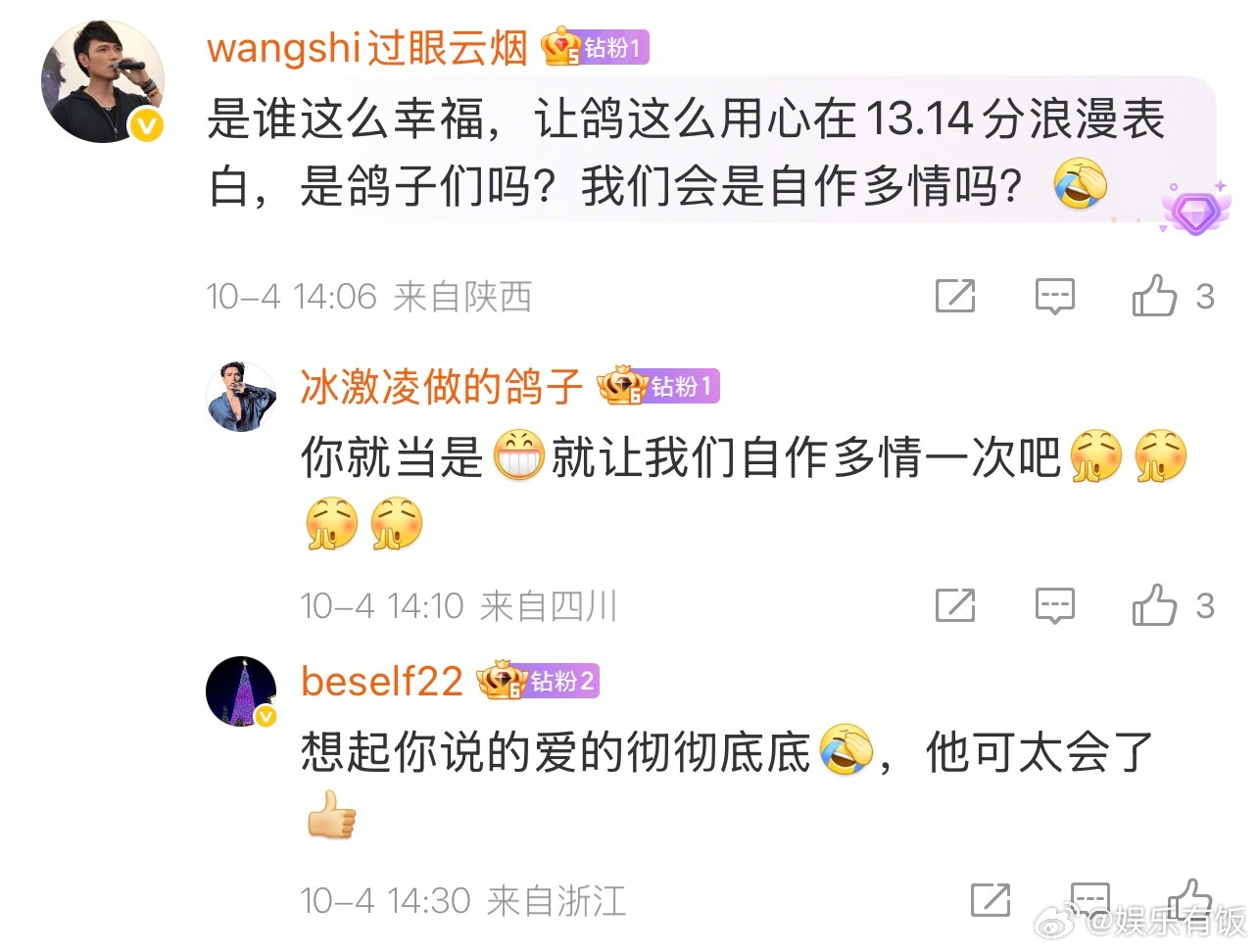 杨宗纬卡点1314发文 发文“天空蓝得彻底,看不见一朵云。跑哪去了?跑进你同样蓝得彻底,的心里。” 好浪漫的一段描述,还卡点了13:14,是在告白粉丝么[哈哈]