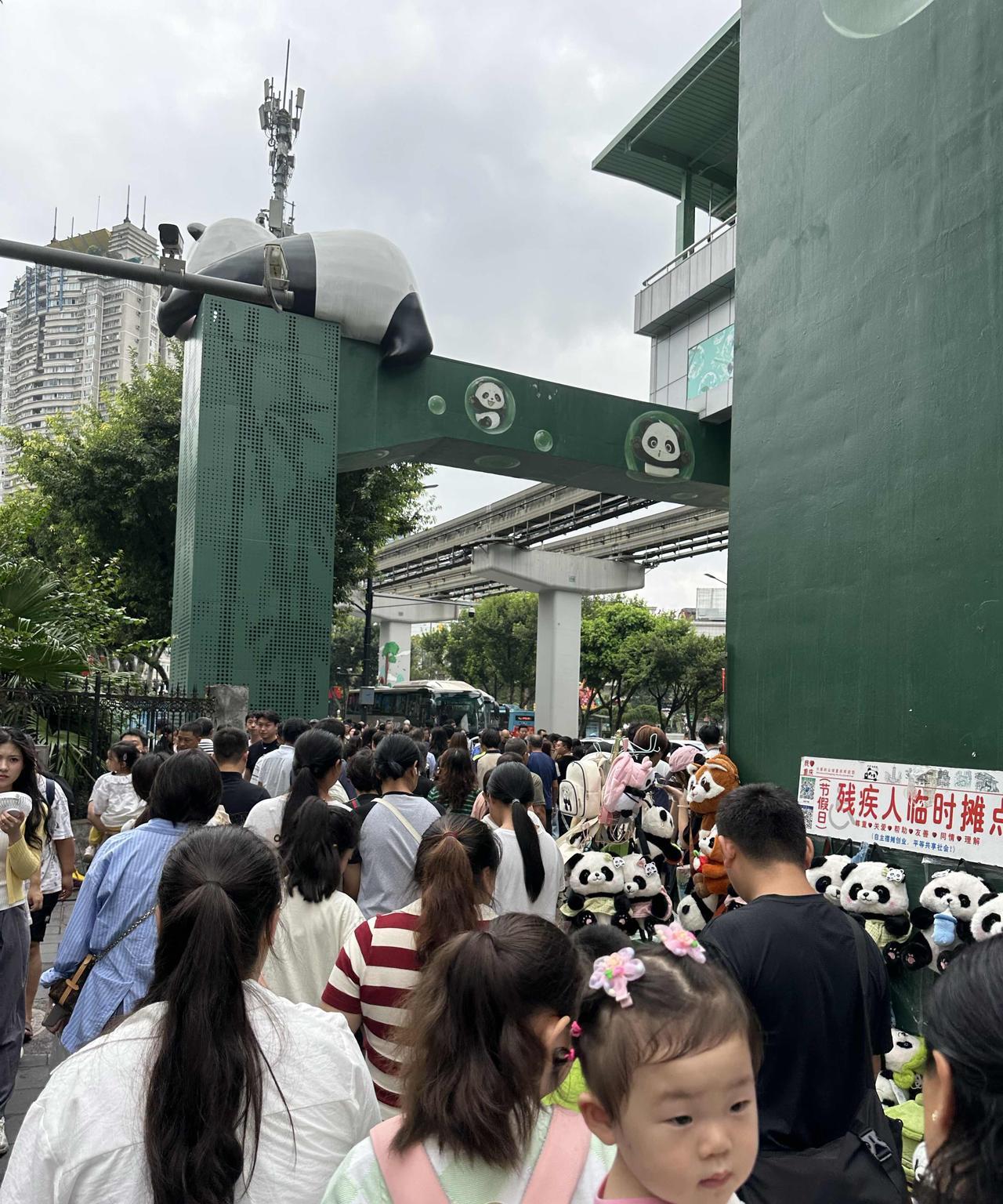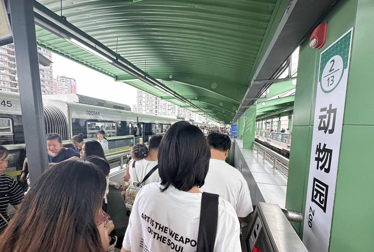 10月4日中午12点,重庆动物园地铁站,人潮汹涌,重庆动物园大门口也排长队,确实