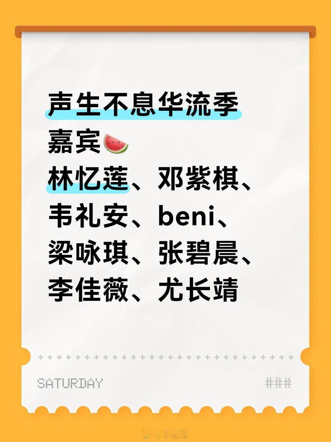 林忆莲、邓紫棋、韦礼安、beni、梁咏琪、张碧晨、李佳薇、尤长靖