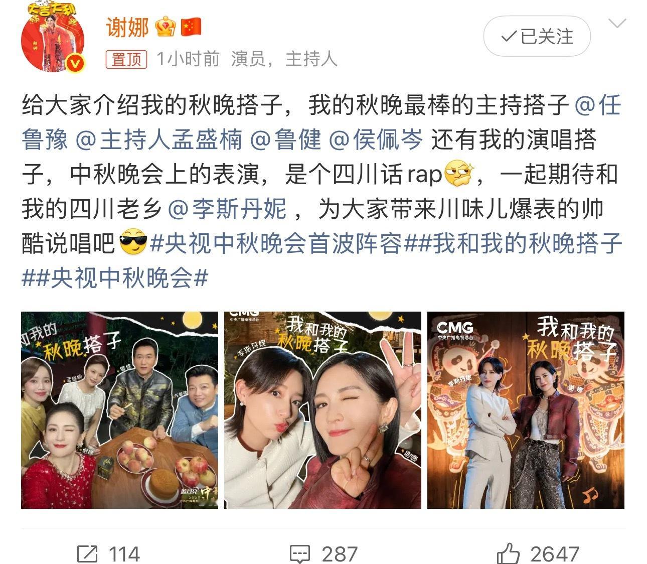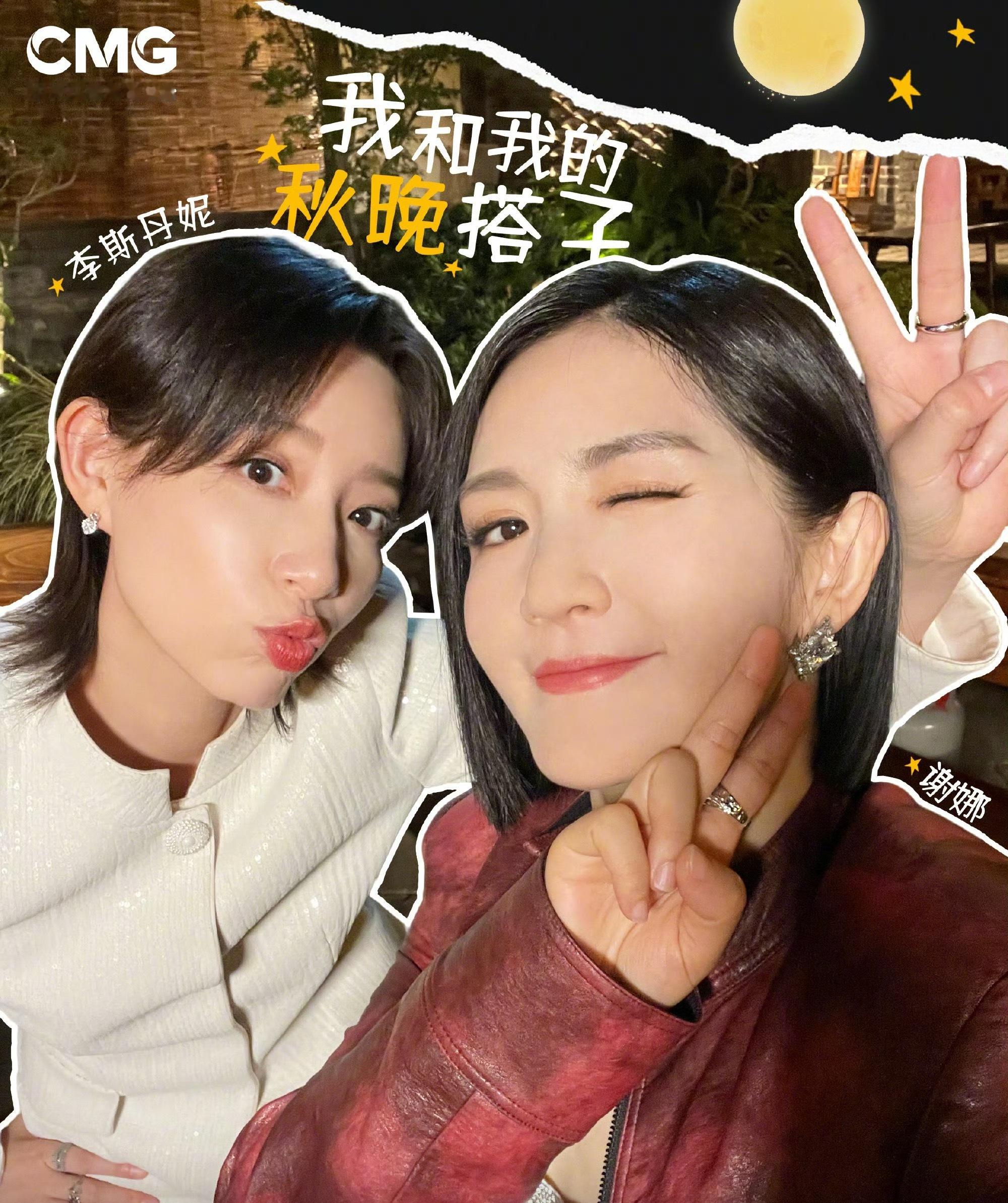 谢娜给大家介绍我的秋晚搭子谢娜不仅有主持搭子,还有唱歌搭子呢!期待娜姐和李斯丹妮给我们带来的精彩舞台[送花花]~ 央视中秋晚会
