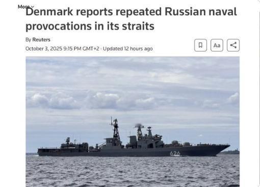 【俄罗斯军舰不断在丹麦海峡进行大胆挑衅——沿碰撞航线航行,甚至使用武器瞄准。】该海峡连接波罗的海和北海,是世界上最繁忙的海上航线之一,经常被俄罗斯海军舰艇使用。丹麦情报局长托马斯·阿伦基尔表示,俄罗斯船只干扰了丹麦的信号,造成该国GPS严重中断,并用武器瞄准丹麦直升机。🇩🇰尽管发生了这些事件,但官员们表示,并不存在直接的军事威胁,尽管丹麦首相梅特·弗雷德里克森称最近无人机飞越丹麦机场和基地是针对该国的“混合攻击”。