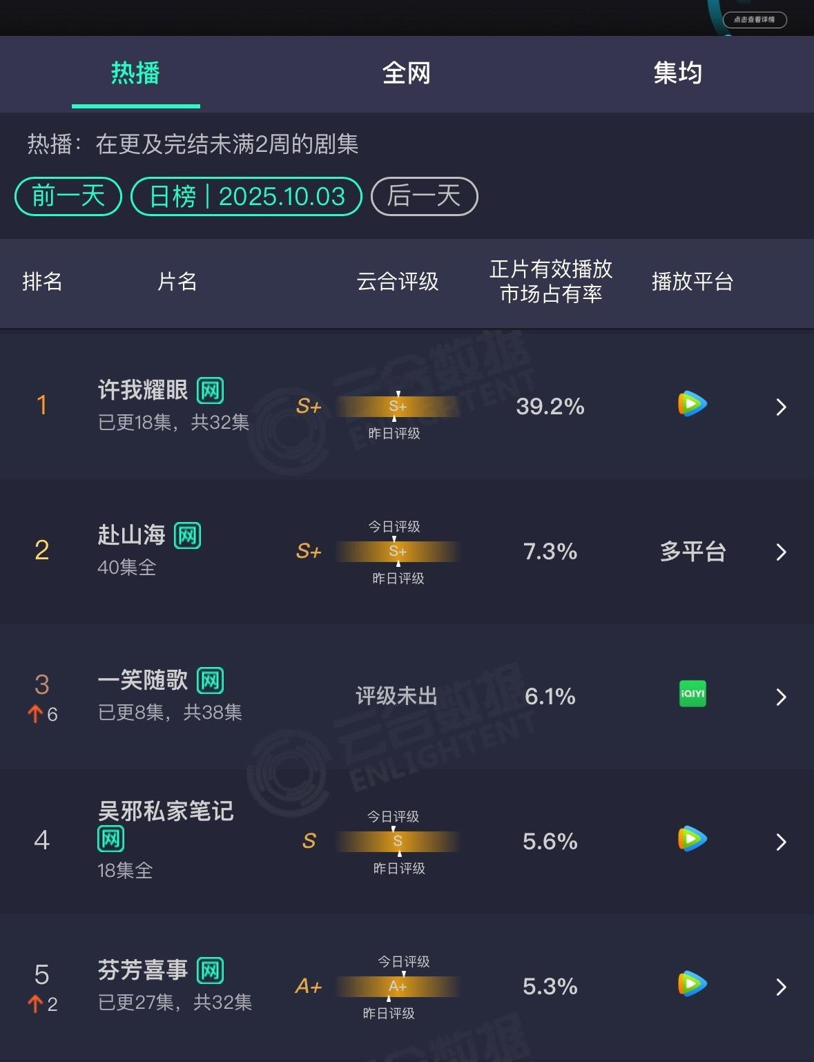 昨天云合: