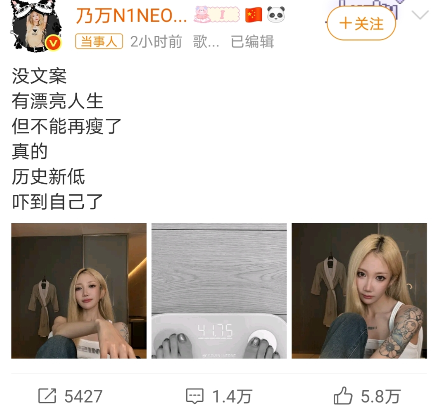 原来明星也会嫌弃自己过瘦啊, 还以为她们都只是一味的追求“ 瘦”, 乃万瘦到不足42kg,李嘉格看了都得 羡慕她的身材。 明星减肥一般都不可取,她们只在乎上镜好不好看,不会在乎会影响身体健康。 毕竟明星是需要向外展示自己的美,如果太胖,太瘦,其实都会被议论。 但身体好坏都是自己的,健康的身体才是最重要的本钱,可以很瘦,但前提是健康的。 你觉得42公斤过瘦了吗?