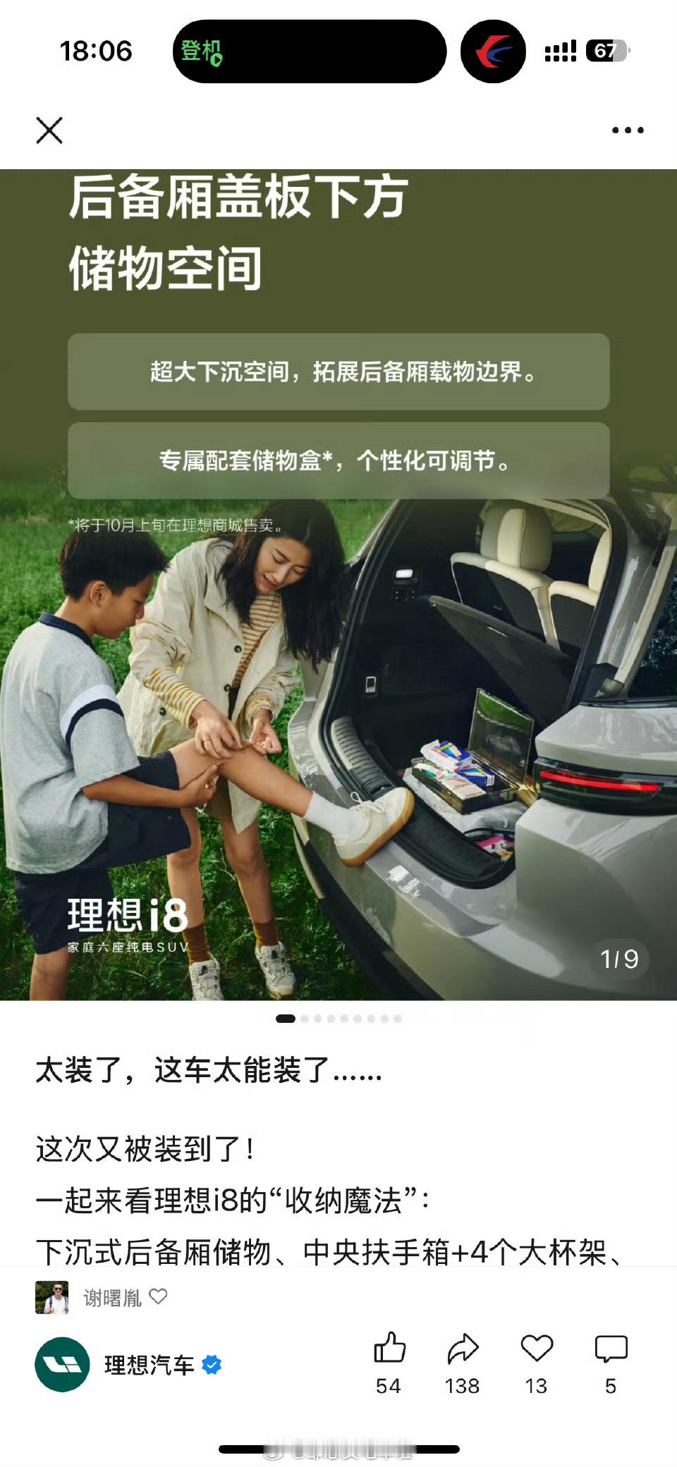 理想汽车先前在形容理想i8后备箱盖板下方储物空间的时候,似乎“不加收敛”地用上了“超大”下沉空间这样的描述。