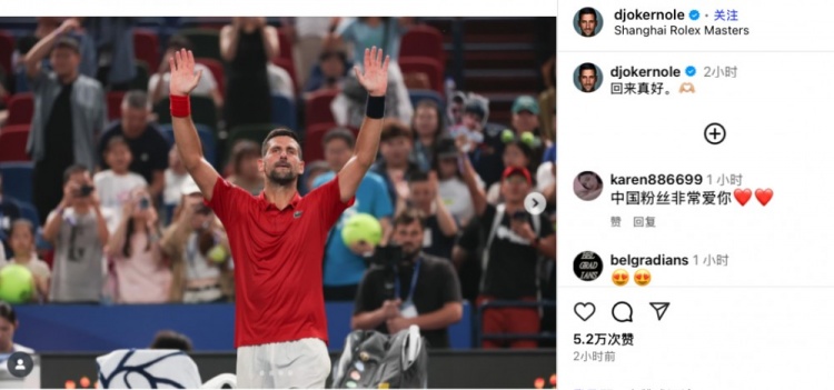 欢迎回来!晋级上海大师赛次轮后小德用中文发社媒:回来真好
