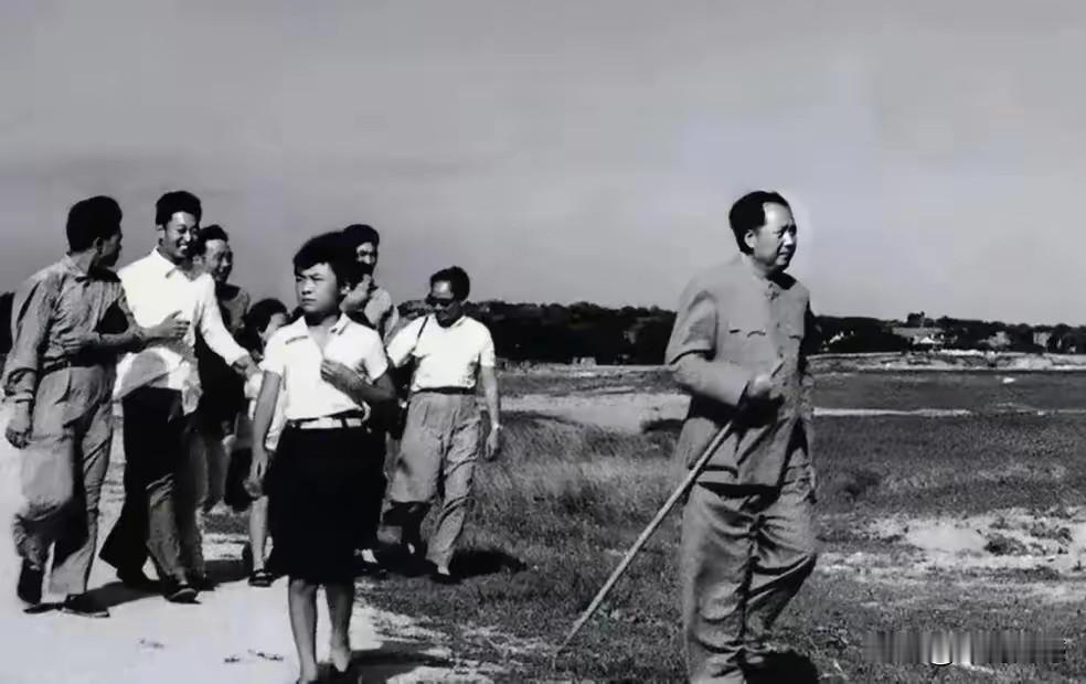 老人家走在最前面,手里拄着一根竹竿,看过很多张老人家手里拿着竹竿的照片,不由得让人心生感叹,按道理说,老人家要是需要拐棍的话,什么样的拐棍他不能用,但是他在这方面是非常随意的,也是非常节俭的,登山的时候,简简单单用一根竿,仅仅这一个方面,就非常的让人感动,永远怀念老人家,他永远活在人民的心中!