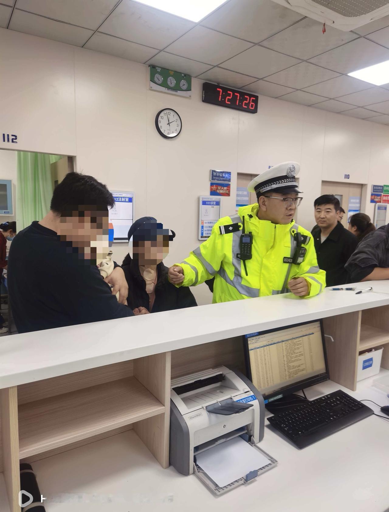【事故危急处置,雨中暖心救援。】10月4日16时47分许,西安市公安局交管支队高交大队巡查警力高磊,王乐,韩振三人在连霍高速西临段西安方向绕城口执勤中发现,一车道发生一起追尾事故,经现场了解,后车车上有3个月大的婴儿需要紧急送医。于是他们迅速分工,协同处置,由高磊和王乐两人开车把夫妻和婴儿送往唐都医院进行检查。韩振现场留守组织开展事故车辆救援、交通疏导和安全警戒。 在送医路上,执勤警力驾车沉稳技术熟练,红蓝警灯开启生命护航通道,一路疾驰将婴儿护送至唐都医院。缩短一半时间仅用时20分钟便抵达医院急诊大厅,完成警医对接,协助办理相关手续,为患儿的及时检查争取了宝贵时间。为这个生命筑起了一道安全防线。
