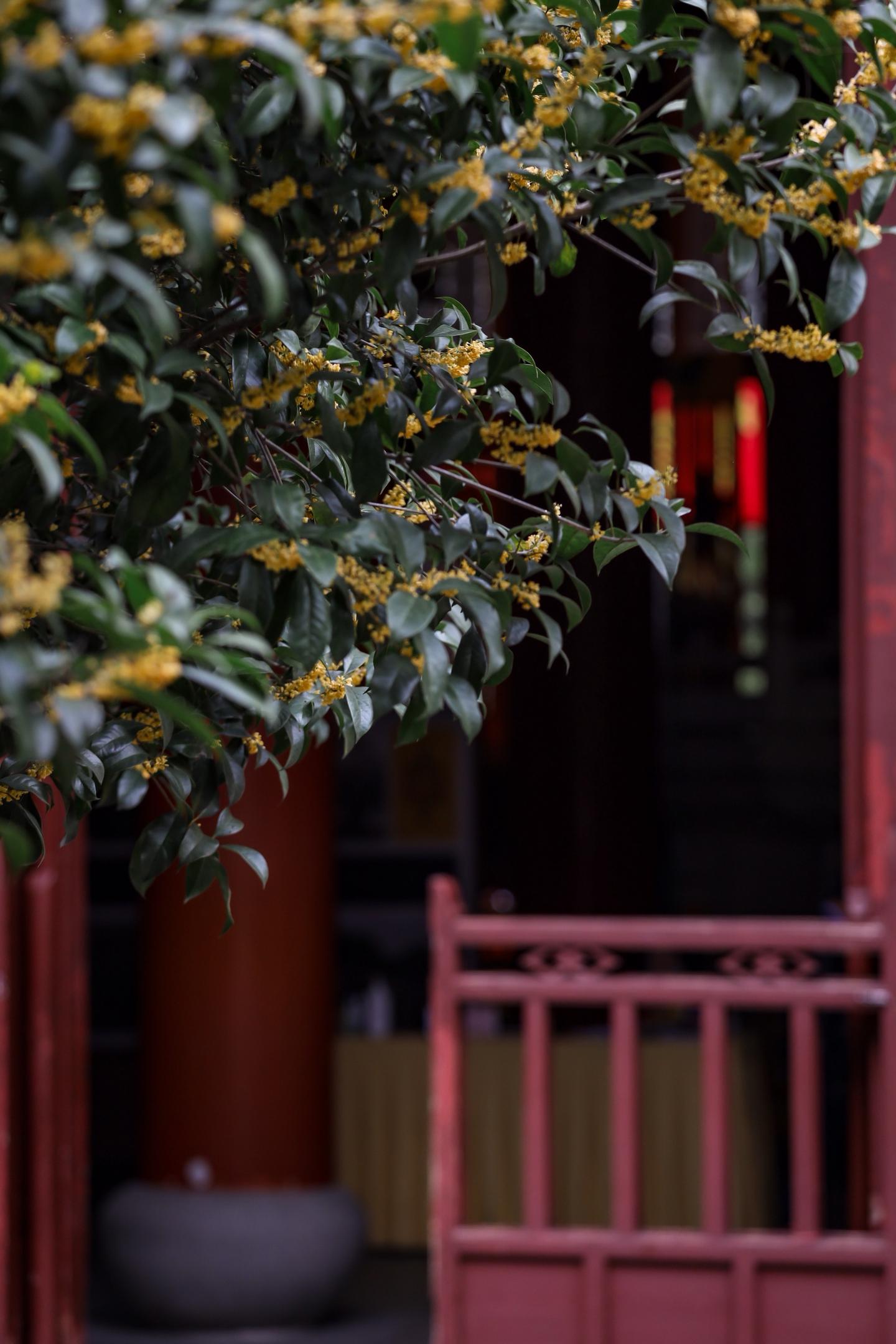 ▫️进门在正殿的左右两边各有一株金桂。