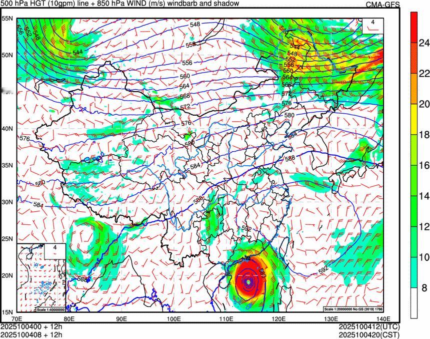 而在副高南侧,因为台风麦德姆影响,4日晚-7日,海南、广东西南部、广西南部和南部、云南多地将自东向西出现强降雨。海南和广东西南部的强降雨主要在4日晚-5日。广西强降雨主要在5-6日,云南的强降雨主要在6-7日。强降雨具有一定的极端性,而且与之前台风博罗依的强降雨区高度重叠,要警惕强降雨可能引发的中小河流洪水、城乡内涝、山洪、地质灾害。