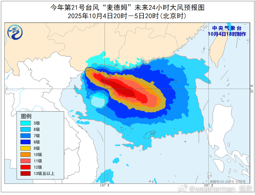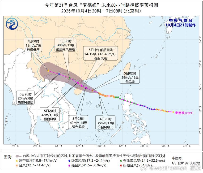 台风红色预警发布台风麦德姆 今晚中央气象台发布了今年首个台风红色预警,预计麦德姆明天可能增强到强台风,并在海南琼海-广东电白之间沿海登陆。大概率就是文昌-徐闻-雷州一带。一种可能是擦登文昌,再登徐闻(目前中央气象台预报),也可能掠过文昌,直接在徐闻-雷州一带登陆。