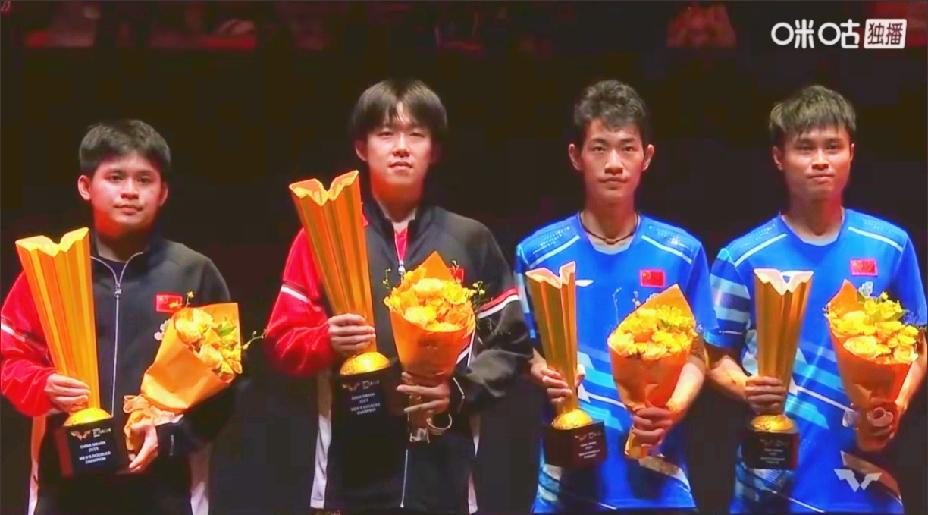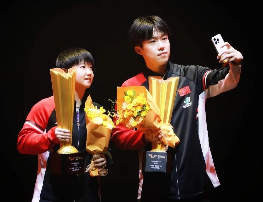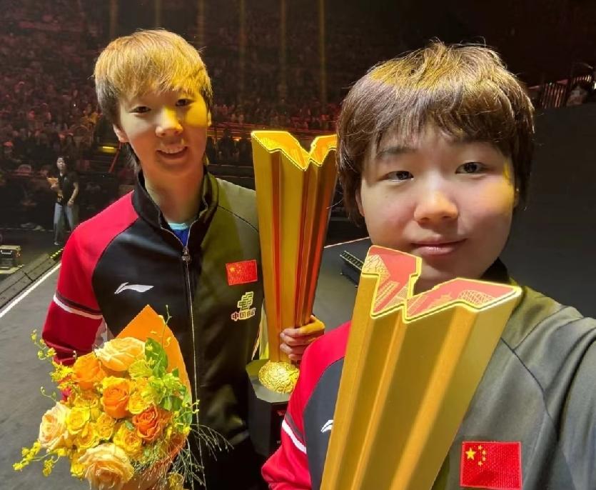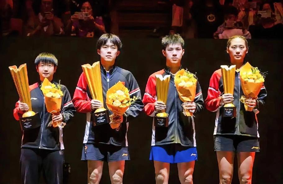 随着王曼昱4:1赢下申裕斌, 成功晋级女单决赛。 此次中国大满贯, 国乒已经包揽了四个冠军, 三个亚军。 混双冠军:王楚钦、孙颖莎 混双亚军:黄友政、陈熠 男双冠军:王楚钦、林诗栋 男双亚军:周启豪、陈俊菘 女双冠军:王曼昱、蒯曼 女单冠军:孙颖莎或王曼昱 女单亚军:孙颖莎或王曼昱 男单四强国乒已经三人晋级, 最后一个席位是费利克斯·勒布伦。 上半区半决赛王楚钦对战向鹏, 下半区半决赛林诗栋对战小勒布伦。 上半区不管谁赢都是国乒队员, 那么压力就给到了小石头。 要是战胜小勒布伦, 国乒男单就会包括男单冠亚军, 那么国乒北京大满贯将包揽五个冠军。 我相信以林诗栋现在的能力, 打败小勒布伦没有问题, 他肯定会跟自己的队友成功会师决赛。 (图片源自于网络)