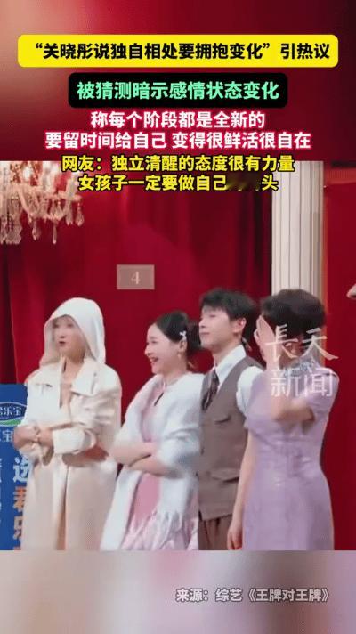 关晓彤在节目里聊到独自相处时说,这时候最该做的是拥抱变化。 她觉得人不用总纠