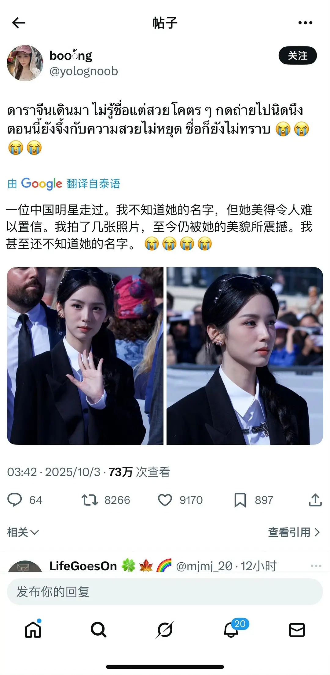周也巴黎时装周就这样在泰推出圈了,有目共睹的美丽