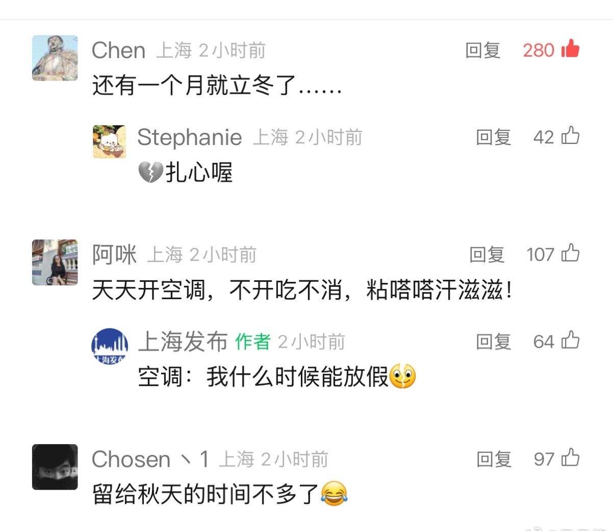 每天看上海发布的小笼包兔子挣扎在高温🥵还有一个月就要立冬了,上海“明起气温冲击高温线”。今年上海5月12日就入夏了,怕不是夏季要长达六个月⋯⋯