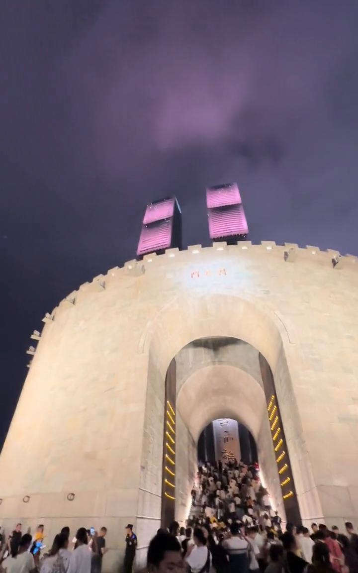 快来看,十万大军攻打重庆朝天门,这不是张献忠的队伍吧?这个朝天门终于建成开放了。今天是十月四号,现在晚上八点四十五分,来看一看。现在水位也涨起来了,一百七十五米高,峡出平湖了。 现在朝天门终于开放了,以前这个地方修的好久一直不开放,现在风景确实很漂亮,游客很多,对面是钟楼广场。