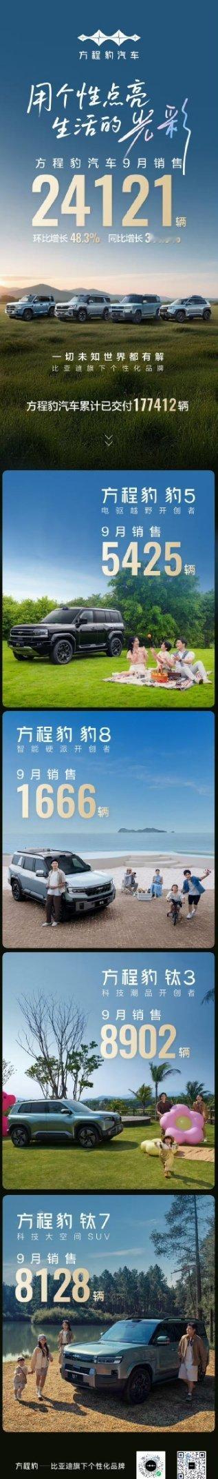 方程豹是真的闯出来了,从首车下线到交付突破10万台仅用18个月,与小米、问界共同跻身新势力品牌交付最快破10万台的TOP3,而9月单月销量就有24121辆,首次突破20000辆大关,环比增长48.3%,同比暴涨340.9%,看来现在大家买车也是喜欢比较个性化不一样的车,方程豹现在证明了一件事能抓好细分化市场,就很牛了汽车资讯方程豹汽车