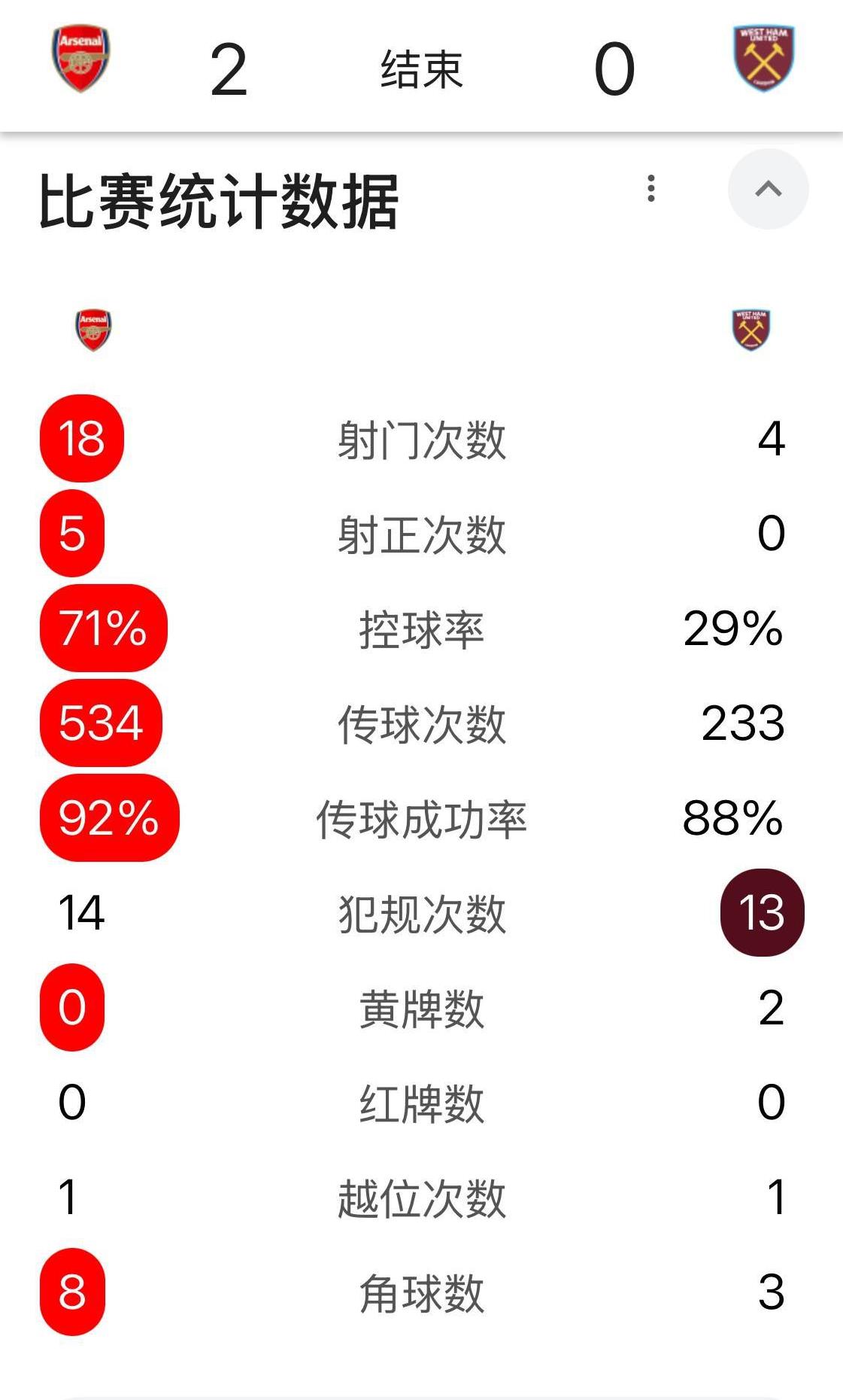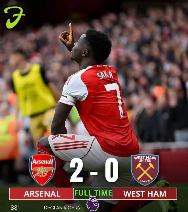 英超赛事: 第七轮,阿森纳对阵西汉姆联 赖斯倒戈旧主破门后拒绝庆祝,真的是有情有义啊。 萨卡迎来英超第200场比赛的里程碑,因此哲凯赖什的点球让给了他,萨卡也成功破门,帮助阿森纳锁定胜局。 可惜了哲凯赖什,已经好几场表现不俗但没能取得进球了。不管怎么说,第一点球手应该还是属于他的。 最终,阿森纳主场2比0击败西汉姆,豪取四连胜,目前也暂时从利物浦手上夺下了英超龙头宝座。