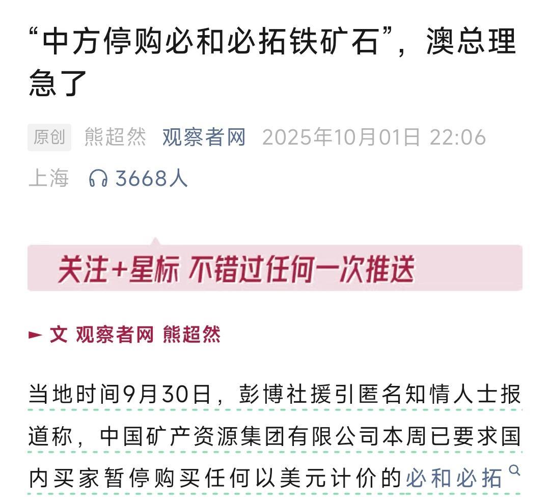 近期有一则被忽视的新闻:中国通知钢铁企业暂停从澳洲供应商采购铁矿石。原来,向中国供应铁矿石的几大主要供应商,如非洲国家、巴西淡水河谷等,大多已同意采用人民币结算,唯独澳大利亚迟迟不松口。在这场中澳铁矿石贸易结算权的争夺中,中国果断以拒买澳大利亚铁矿石表明态度。放在十年前,谁能料到会出现这样的局面? 中国向来不会在吃亏后忍气吞声,而是会痛定思痛、卧薪尝胆,逐步找回场子,那些不了解这一点的外国人最终都吃了大亏。澳大利亚铁矿石虽有一定优势,其品位却不及巴西、几内亚,只是因开采时间早、能力强且运输方便,过去中国才高度依赖它。但如今,中国通过“一带一路”倡议,在南美建设钱凯港、规划两洋铁路,保障巴西铁矿出口;在几内亚,中国全程参与铁路、港口建设,为其铁矿石出口中国铺平道路。 即便过去依赖澳大利亚铁矿石,但是中国不断研发出新的提炼方法,大幅提高了巴西淡水河谷铁矿石的利用效率。如此一来,中国在铁矿石贸易中掌握了更大的主动权,无论是议价能力还是货币结算方式的选择上,都有了更多的话语权,不再受制于澳大利亚。