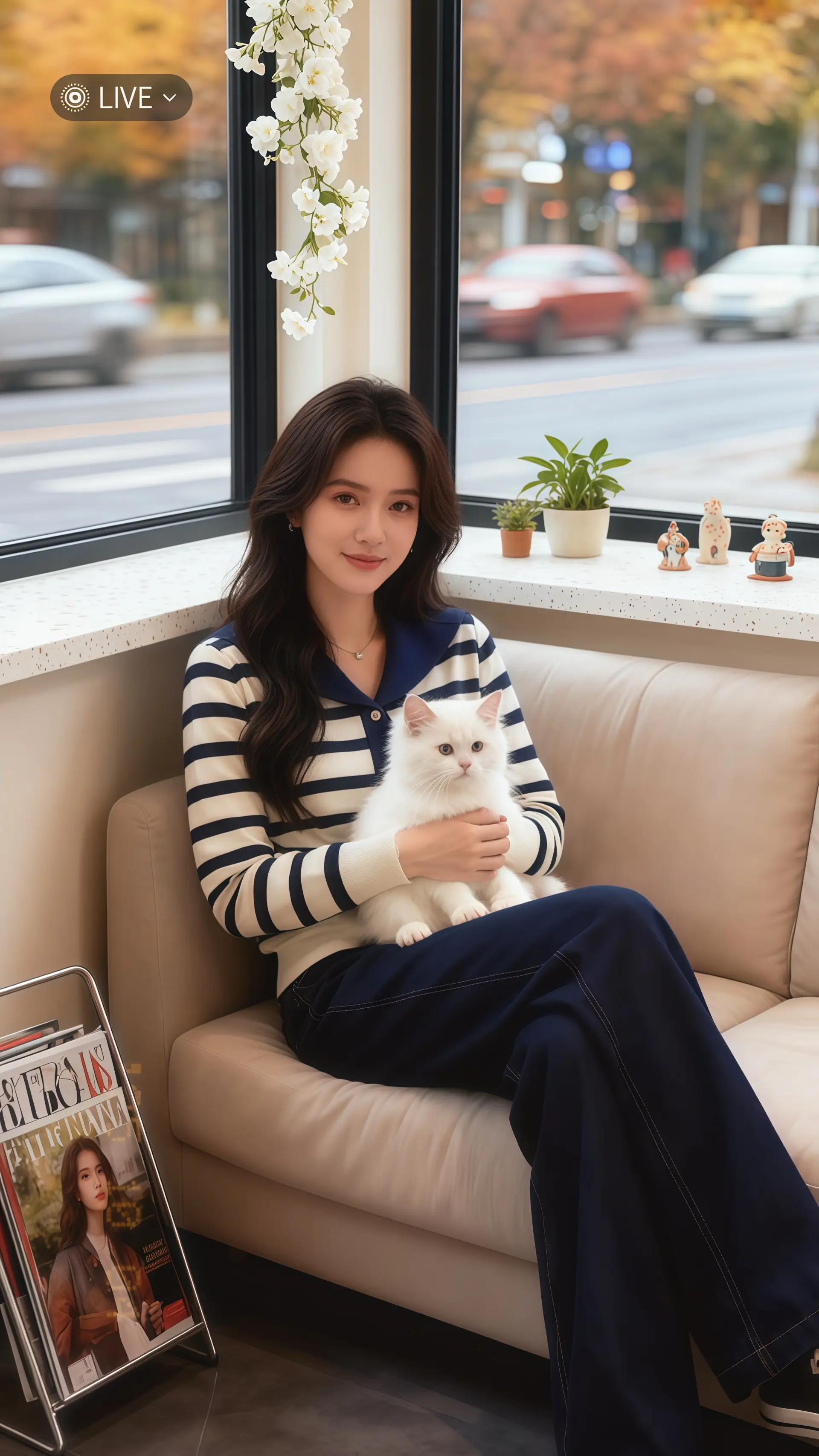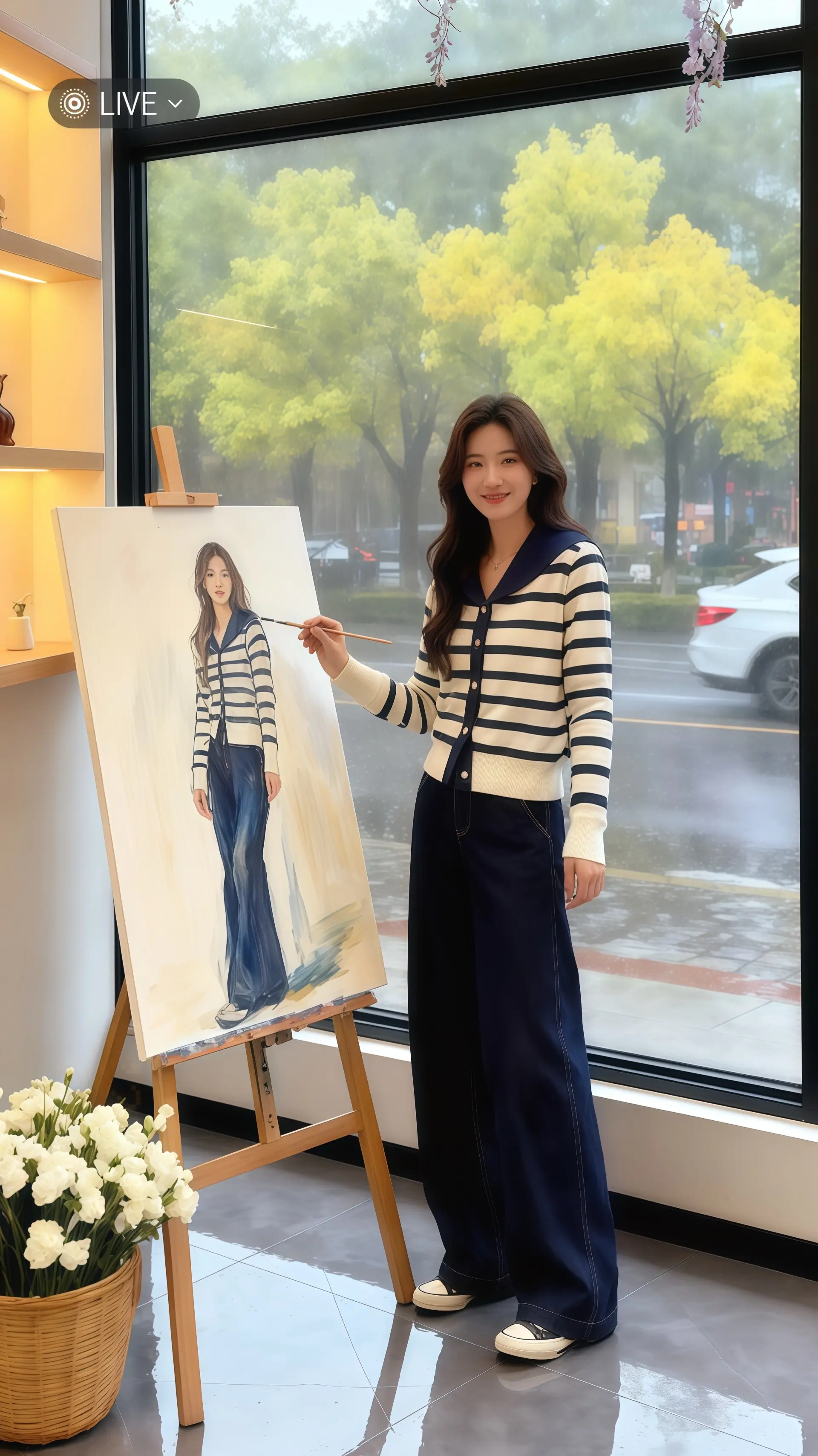 她穿着披肩条纹毛衣针织衫,在轻奢风女装店的落地窗前,将秋日的斑斓织进了衣摆的纹路里。蓝白条纹的披肩式设计,是随性与优雅的缠绵。宽松的版型慵懒垂落,同色系却层次分明,恰如秋叶在枝头的渐变。窗外秋意正浓,黄绿红交织的树影在玻璃上晕成一幅油画,街道上行驶的汽车带起风,与店内暖调的服饰碰撞出复古电影感。她指尖掠过针织的纹理,那份松弛的高级感,在这秋光缱绻的时刻,成了都市里最温柔的时髦注脚。