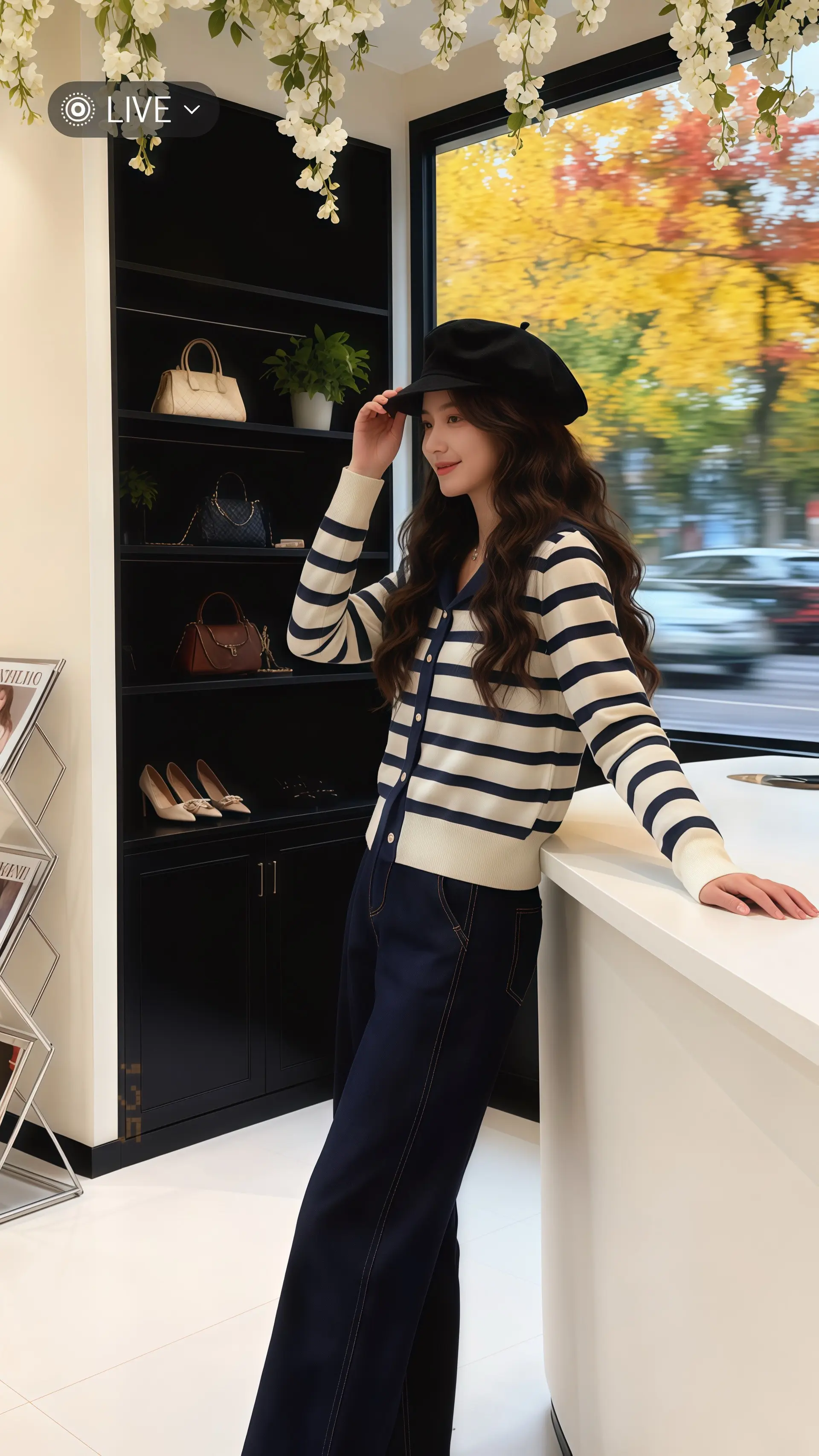 她穿着披肩条纹毛衣针织衫,在轻奢风女装店的落地窗前,将秋日的斑斓织进了...