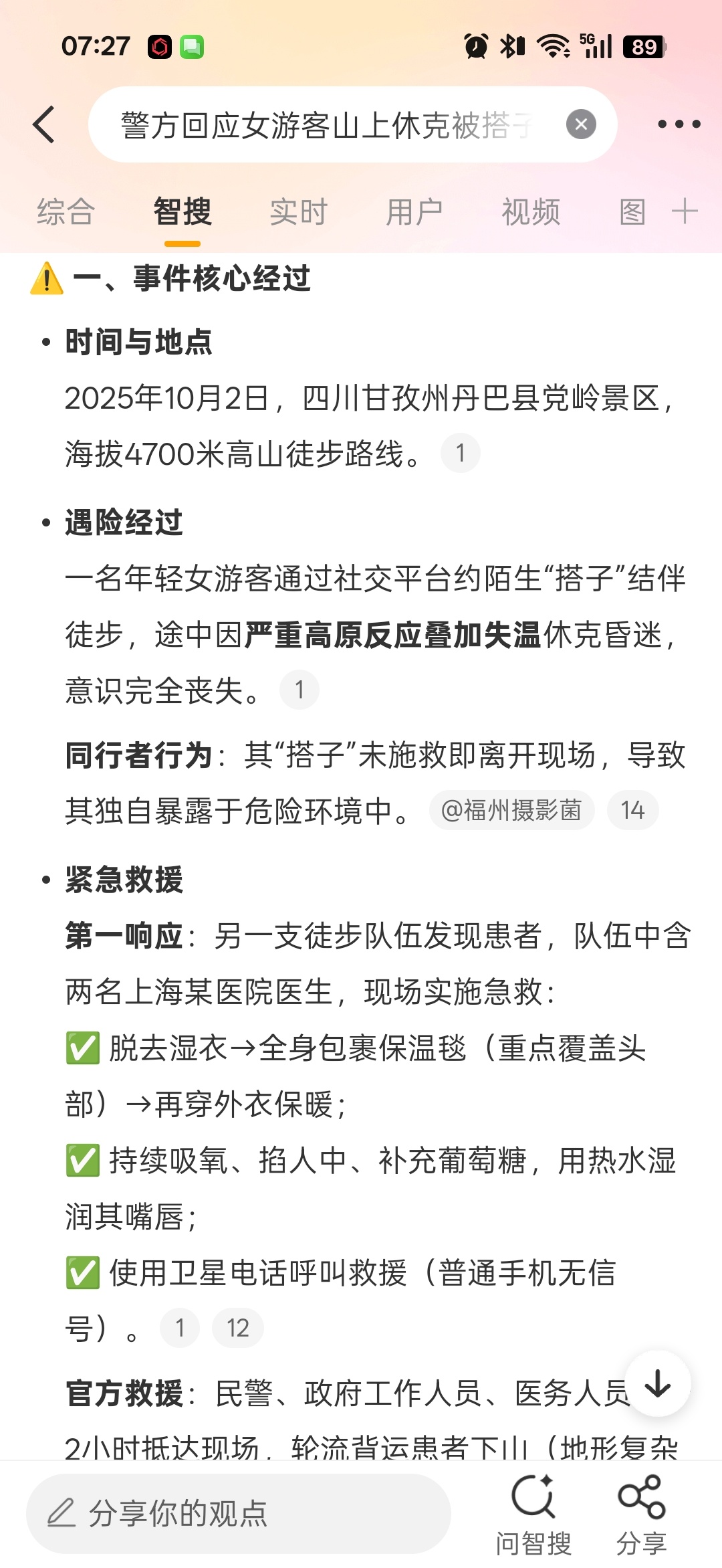 警方回应女游客山上休克被搭子丢下