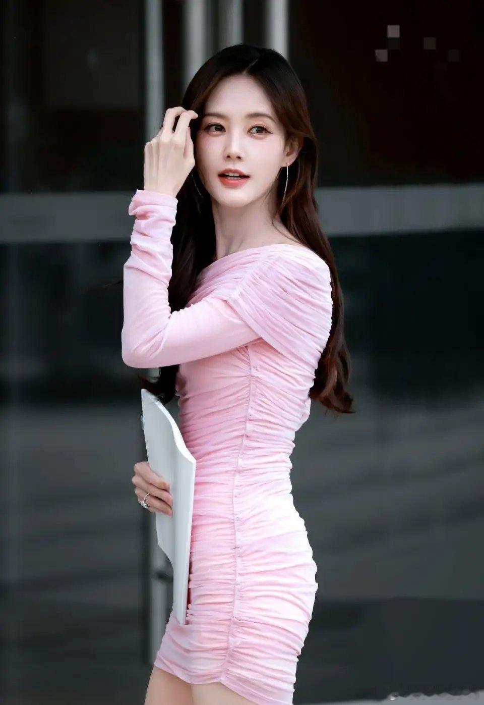 李一桐新剧《美人余》路透,身穿粉色包臀裙,时尚又靓丽