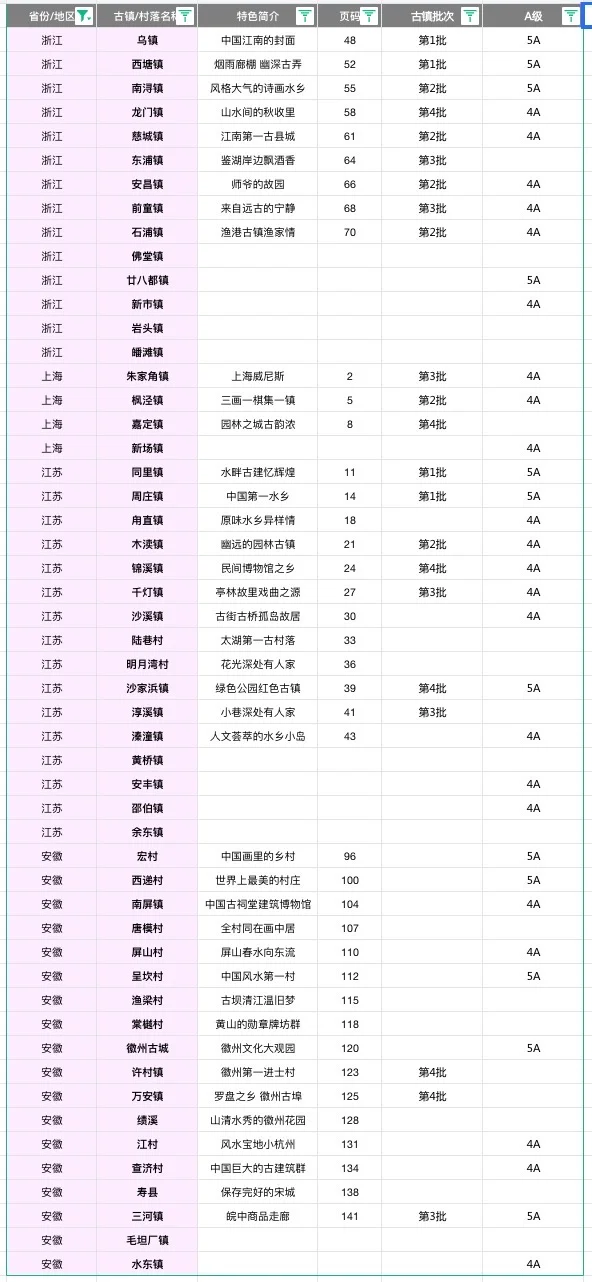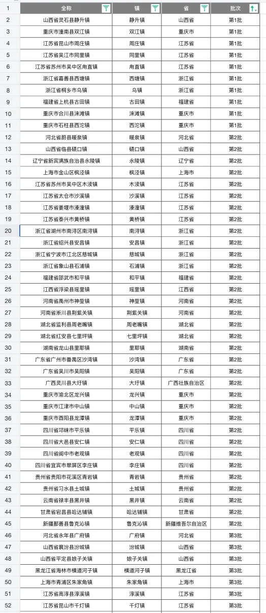 还有国家前4批古镇名单(越早批次,含金量相对越高)