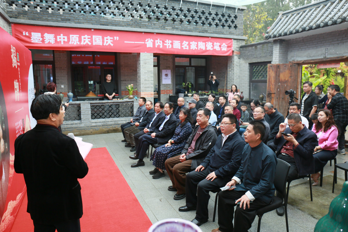 10月4日,“墨舞中原庆国庆”省内书画名家陶瓷笔会、郑州官窑陶瓷裂变釉艺术馆揭牌仪式暨“史宝银书法小品展”,在郑州市金水区黄岗庙非遗小镇举行。